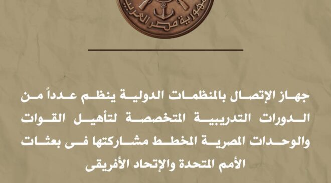 القوات المسلحة : جهاز الإتصال بالمنظمات الدولية ينظم عدداً من الدورات التدريبية المتخصصة لتأهيل القوات والوحدات المصرية المخطط مشاركتها فى بعثات الأمم المتحدة والإتحاد الأفريقى
