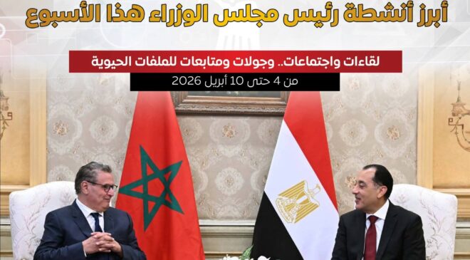 المركز الإعلامي لمجلس الوزراء يستعرض بالإنفوجراف أبرز أنشطة رئيس مجلس الوزراء هذا الأسبوع