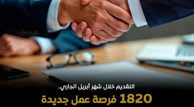 وزارة العمل : فتح باب التقديم خلال شهر ابريل لنشرة التوظيف الأسبوعية ب 1820 فرصة عمل بالتعاون مع 33 شركة من شركات القطاع الخاص موزعة على 12 محافظة