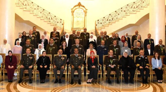 الفريق أشرف سالم زاهر القائد العام للقوات المسلحة وزير الدفاع والإنتاج الحربى يكرم عدداً من القادة الذين أوفوا العطاء بالقوات المسلحة