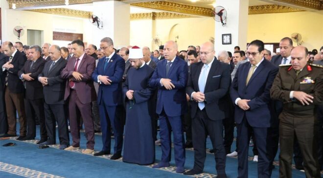 وزير الأوقاف ومحافظو الجيزة والقاهرة والقليوبية يؤدون صلاة الجمعة بمسجد السيدة خديجة احتفالًا بالعيد القومي الـ(107) لمحافظة الجيزة