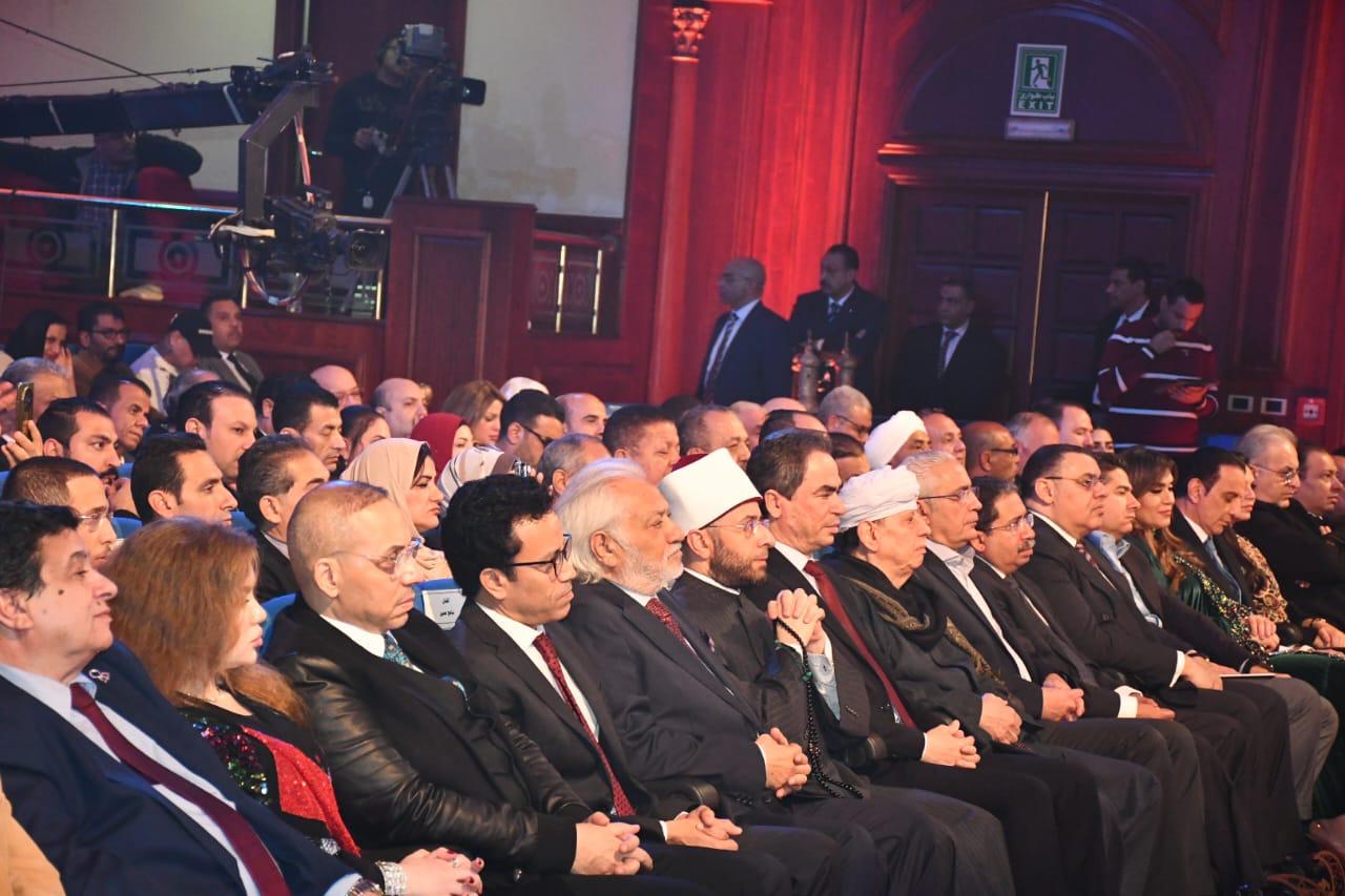 ورحَّب وزير الأوقاف في كلمته برئيس الهيئة الوطنية للإعلام وبالحضور الكريم، مؤكدًا أن هذه الليلة المباركة تأتي في سياق الاحتفاء بالمبدعين الذين أثروا الوجدان المصري والعربي، مشيرًا إلى أن الشيخ ياسين التهامي يُعدّ رمزًا مصريًا كبيرًا امتدت مسيرته لأكثر من نصف قرن، استطاع خلالها أن يطوف بالمديح والإنشاد في مختلف القرى والمدن، مترنمًا بالثناء على الله عز وجل، ومتغنيًا بحب النبي الكريم صلى الله عليه وسلم، حتى اجتمعت القلوب حوله وتعلقت بأدائه المتميز.