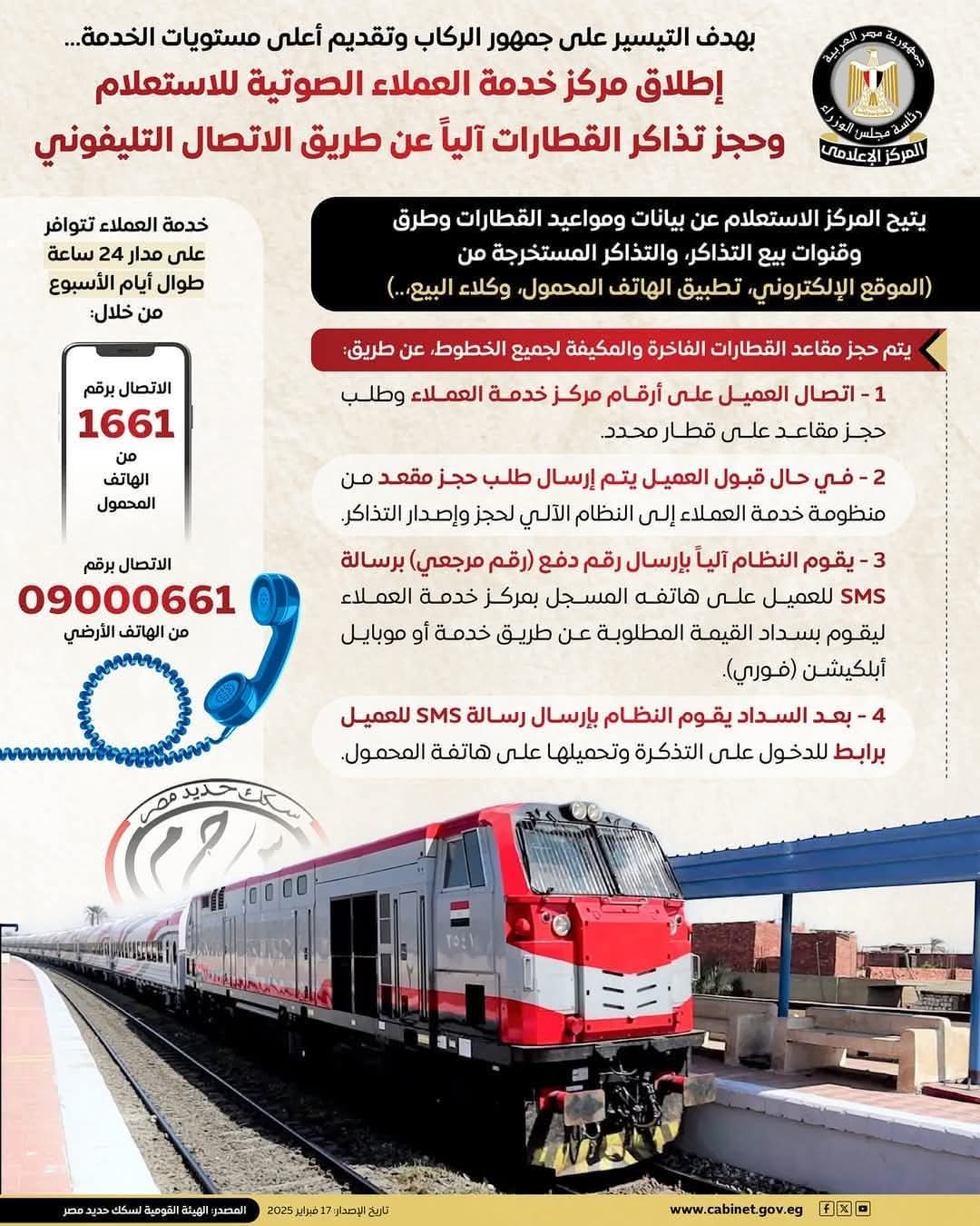 كل ماتريد معرفته عن مركز خدمة العملاء الصوتية الذي اطلقته هيئة السكك الحديدية للإستعلام وحجز تذاكر القطارات آلياً عن طريق الاتصال التليفوني للتيسير على جمهور الركاب وتقديم اعلي مستويات الخدمة