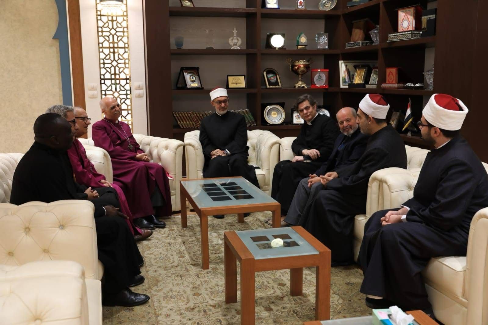 استقبل فضيلةُ الأستاذ الدكتور نظير محمد عيَّاد، مفتي الجمهورية، رئيس الأمانة العامة لدُور وهيئات الإفتاء في العالم، الدكتور المطران منير حنا، رئيس أساقفة الكنيسة الأسقفية الشرفي ومدير المركز المسيحي الإسلامي للتفاهم والشراكة، والمطران سامي فوزي، رئيس أساقفة إقليم الإسكندرية بالكنيسة الأسقفية الإنجليكانية، والوفد المرافق؛ وذلك لتقديم التهنئة بمناسبة قرب حلول عيد الفطر المبارك.