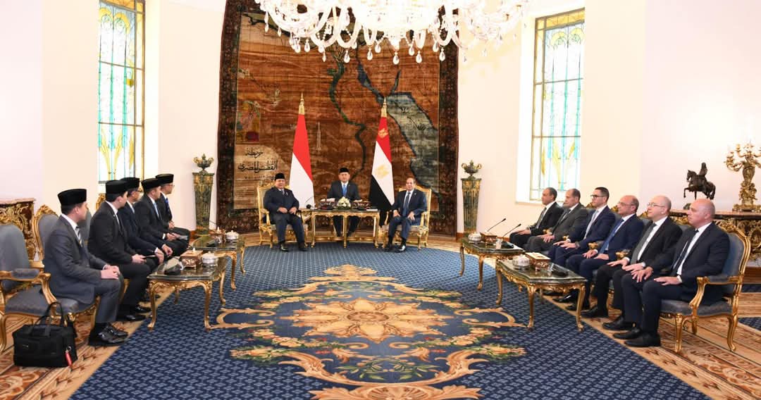استقبل السيد الرئيس عبد الفتاح السيسي، اليوم، بقصر الإتحادية، الرئيس الإندونيسي برابوو سوبيانتو، حيث أقيمت مراسم الإستقبال الرسمي وتم عزف السلامين الوطنيين واستعراض حرس الشرف.