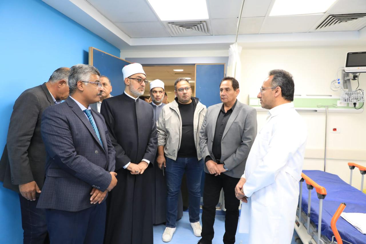 مفتى الجمهورية يتفقد مصابي غزة بمستشفى العريش العام