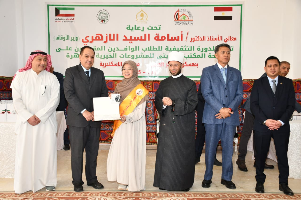 شهد معالي الأستاذ الدكتور أسامة الأزهري، وزير الأوقاف؛ وسعادة السفير غانم صقر الغانم، سفير دولة الكويت بالقاهرة؛ وسعادة السفير لطفي رؤوف، سفير إندونيسيا بالقاهرة؛ والسيد محمد شذران، نائب سفير ماليزيا بالقاهرة، حفل ختام فعاليات الدورة التثقيفية للطلاب المقيدين على منحة المكتب الكويتي للمشروعات الخيرية بالقاهرة؛ بحضور كل من: الأستاذ عدنان جمعة سبتي، مدير المكتب الكويتي للمشروعات الخيرية؛ والدكتور محمد عبد الرحيم البيومي، أمين عام المجلس الأعلى للشئون الإسلامية؛ والأستاذ الدكتور علاء جانب، عميد كلية اللغة العربية بجامعة الأزهر بالقاهرة؛ والدكتور أيمن أبو عمر، رئيس الإدارة المركزية لشئون الدعوة؛ والدكتور نجاح عبدالرحمن راجح، مدير مديرية أوقاف الإسكندرية؛ وعدد من القيادات الدعوية والتنفيذية بالمحافظة.