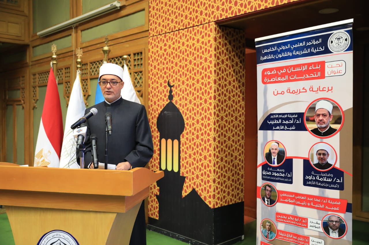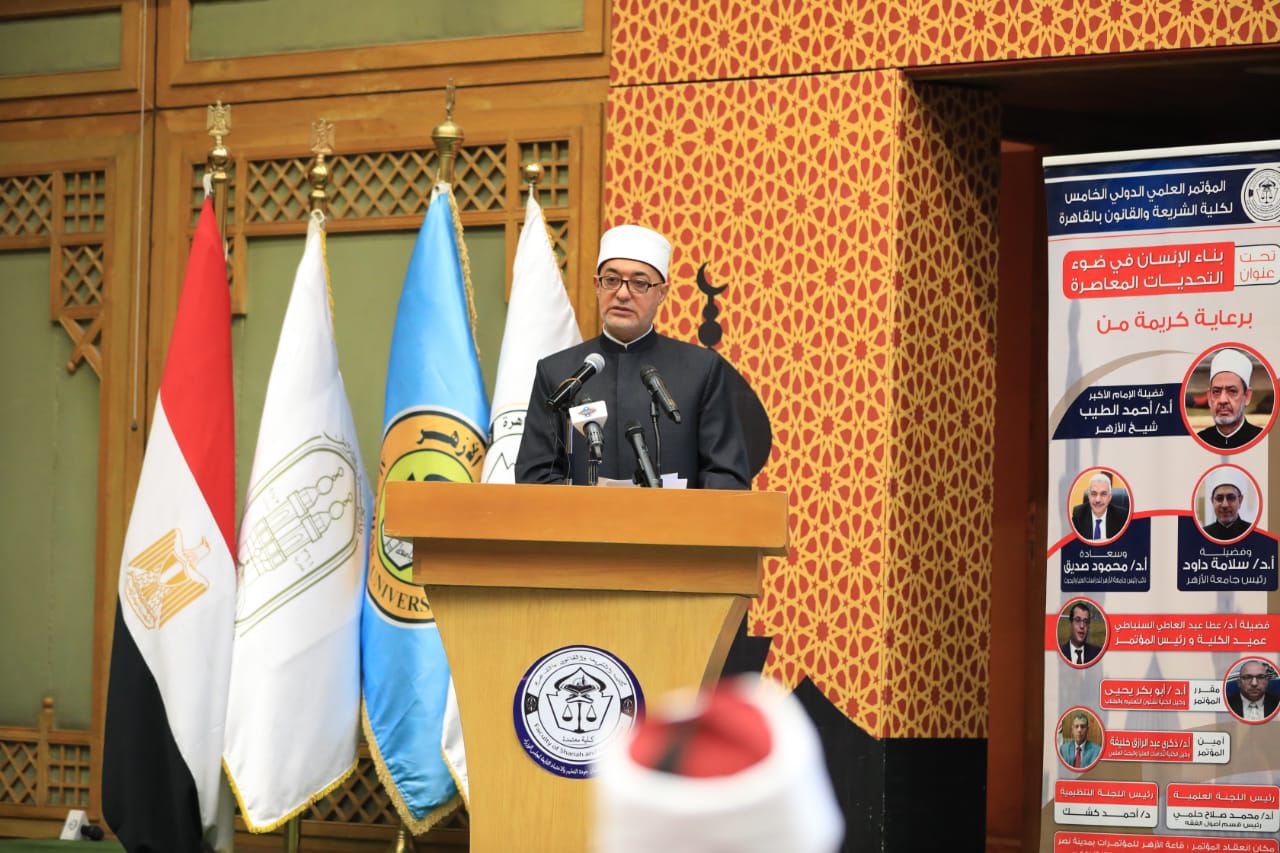 جاء ذلك خلال كلمة فضيلته في الجلسة الافتتاحية بالمؤتمر العلمي الخامس لكلية الشريعة والقانون بجامعة الأزهر بالقاهرة، تحت عنوان “بناء الإنسان في ضوء التحديات المعاصرة”.