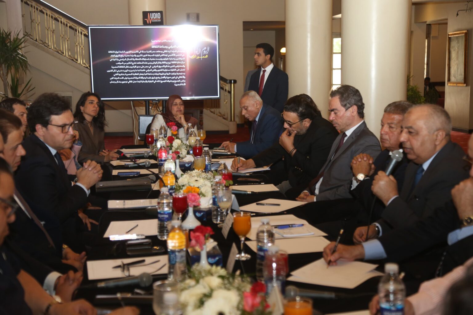 وشهد الاجتماع مناقشة عدد من المحاور الرئيسية المتعلقة بتطوير المحتوى الدرامي، ودراسة مدى تأثيره على المجتمع، واقتراح آليات التعاون بين الجهات المختصة، كما شارك فيه عدد من الشخصيات العامة وممثلي المؤسسات الإعلامية والثقافية، وهم: المهندس خالد عبدالعزيز، رئيس المجلس الأعلى لتنظيم الإعلام، الكاتب والإعلامي أحمد المسلماني، رئيس الهيئة الوطنية للإعلام، عماد ربيع، رئيس قطاع الإنتاج الدرامي بالشركة المتحدة ، علا الشافعي، رئيس لجنة المحتوى الدرامي بالشركة المتحدة للخدمات الإعلامية، الدكتورة هالة رمضان، مدير المركز القومي للبحوث الاجتماعية والجنائية، سارة عزيز حكيم، خبيرة اجتماعية ونفسية ومدير مؤسسة Safe، الدكتور حسن عماد مكاوي، رئيس لجنة الدراسات الإعلامية بالمجلس الأعلى للجامعات وعميد كلية الإعلام جامعة القاهرة الأسبق، والدكتورة جيهان يسري أبو العلا، عضو اللجنة التخطيطية للجنة قطاع الدراسات الإعلامية وعميدة كلية الإعلام السابقة، المخرج خالد جلال، رئيس قطاع الإنتاج الثقافي، المخرج عمر عبدالعزيز، رئيس اتحاد النقابات الفنية، الكاتب والسيناريست عبدالرحيم كمال، الكاتبة مريم نعوم، المنتج جمال العدل، والمخرج شريف عرفة.
