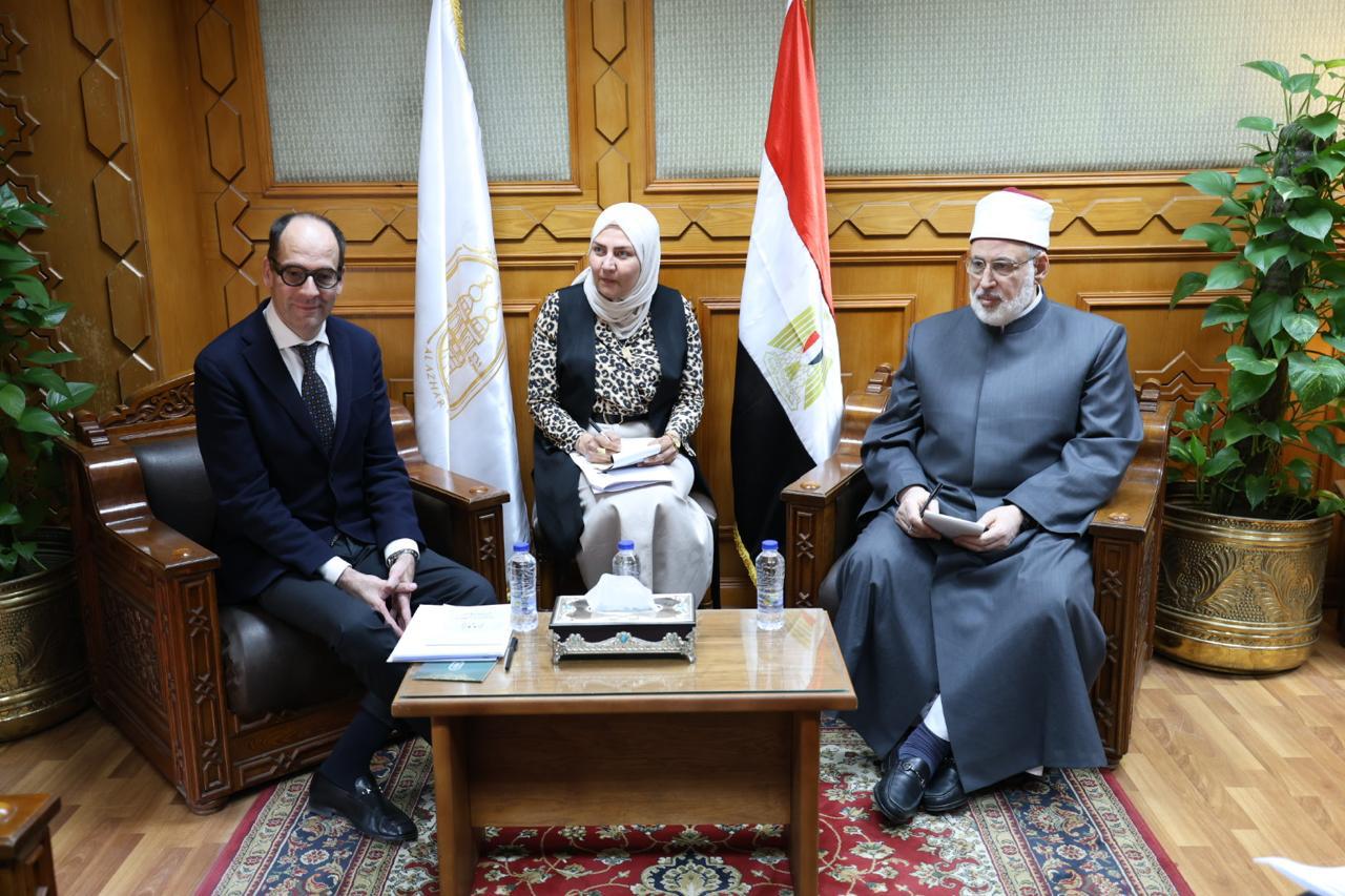 *مجموعة فيينا للدين والدبلوماسية: وثيقة الأخوة الإنسانية تمثل إعلانًا تاريخيًّا في مسار التعايش والسلام العالمي* استقبل فضيلة أ.د محمد الضويني، وكيل الأزهر الشريف، وفدًا من مجموعة فيينا للدين والدبلوماسية، برئاسة السيد «ألكسندر ريجر»، منسق ومؤسس المجموعة، التي تضمّ ممثلين رسميين من 14 دولة أوروبية، وتسعى إلى تعزيز الحوار بين الأديان ونشر ثقافة التعايش وحرية المعتقد. ورحب وكيل الأزهر بالوفد، مشيدًا بمساعيهم الإنسانية النبيلة، وأنّ الأزهر الشريف منفتح دائمًا على التعاون مع كل دعاة الحوار، انطلاقًا من رسالته العالمية التي يحملها فضيلة الإمام الأكبر أ.د أحمد الطيب، شيخ الأزهر الشريف،…