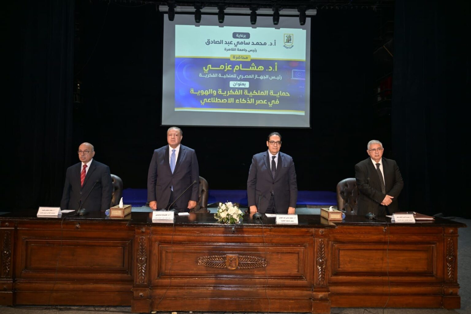 تواصل جامعة القاهرة، برعاية الدكتور محمد سامي عبد الصادق رئيس الجامعة، فعاليات الموسم الثقافي للعام الجامعي 2024-2025 حيث شهدت قاعة الاحتفالات الكبري بالجامعة، محاضرة تحت عنوان “حماية الملكية الفكرية والهوية في عصر الذكاء الاصطناعي”، ألقاها الدكتور هشام عزمي رئيس الجهاز المصري للملكية الفكرية، وأدار الندوة الدكتور عبدالله التطاوى المستشار الثقافى لرئيس الجامعة، والدكتور محمد منصور هيبة المستشار الإعلامي لرئيس الجامعة والمتحدث الرسمى باسم الجامعة، بحضور الدكتور محمود السعيد نائب رئيس جامعة القاهرة لشئون الدراسات العليا والبحوث، والدكتورة غادة عبد الباري القائم بأعمال نائب رئيس الجامعة لشئون خدمة المجتمع وتنمية البيئة، والدكتور عبد الهادي العوضي مستشار رئيس الجامعة للشؤون الطلابية والمدن الجامعية، وعدد من عمداء الكليات والوكلاء، ولفيف من أعضاء هيئة التدريس والعاملين وجموع من الطلاب بمختلف كليات الجامعة.