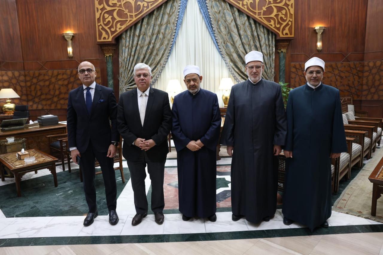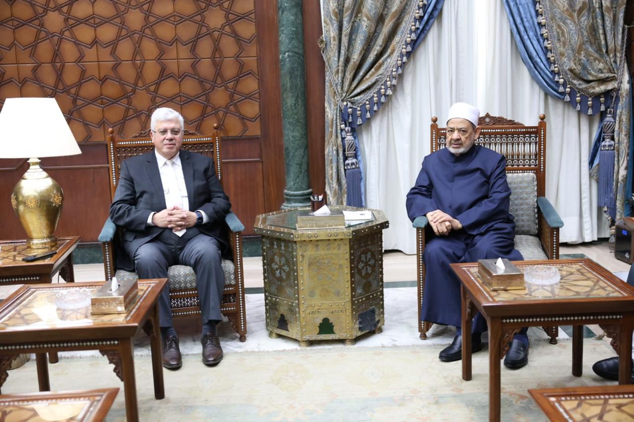 استقبل فضيلة الإمام أ. د. أحمد الطيب، شيخ الأزهر الشريف، الدكتور محمد أيمن عاشور، وزير التعليم العالي والبحث العلمي، بحضور فضيلة الدكتور محمد الضويني، وكيل الأزهر، وفضيلة الدكتور سلامة داود، رئيس جامعة الأزهر، والدكتور محمد ضياء زين العابدين، رئيس جامعة عين شمس، وذلك بمقر مشيخة الأزهر.