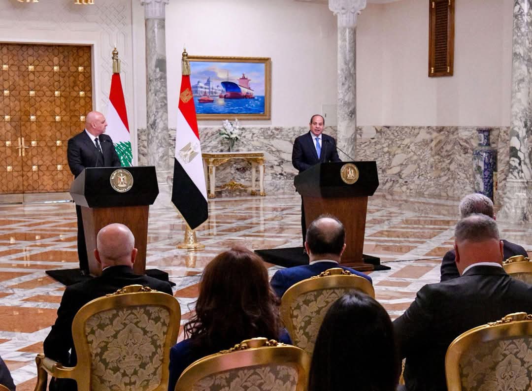 لقد تطرقت مباحثاتى، مع أخى فخامة الرئيس “عون” كذلك، إلى تطورات الأوضاع فى قطاع غزة .. حيث أكدنا ضرورة إنهاء العدوان على القطاع فورا، واستئناف العمل باتفاق وقف إطلاق النار، وإطلاق سراح كافة الرهائن والأسرى .. مع ضمان دخول المساعدات الإنسانية، بشكل عاجل .. لتلبية الاحتياجات الملحة، للمدنيين الأبرياء فى غزة. كما جددنا التأكيد، على موقف مصر ولبنان الراسخ والداعم للقضية الفلسطينية ..مع رفض أى محاولات تهجير للفلسطينيين،أو تصفية قضيتهم العادلة.
