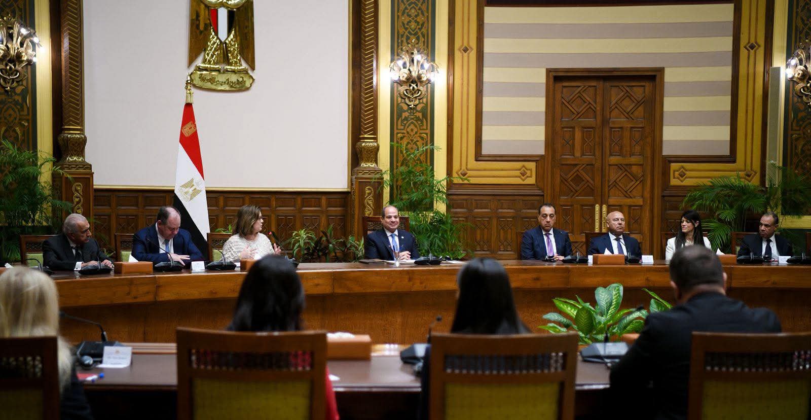 President listened to interventions from the delegation members, who expressed their appreciation for the Egyptian government’s commitment to supporting investment and economic development. They affirmed their keenness to capitalize on the promising opportunities offered by the Egyptian market and economy to achieve common interests.