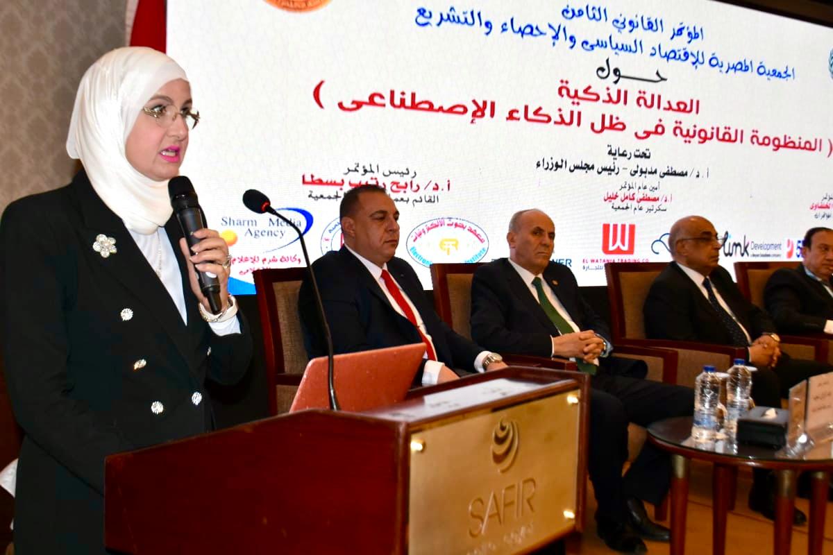 وفي كلمتها خلال الفعاليات، أكدت د.شيرين محرم أهمية المؤتمر حيث يمثل محطة محورية على طريق إعادة تشكيل مستقبل منظومة التقاضي في مصر، مشيرة إلى أنه يعكس توجهًا إستراتيجيًّا لدمج التكنولوجيا الحديثة مع البنية القانونية، بما يسهم في بناء نظام عدلي أكثر ديناميكية ومرونة، ويستجيب بصورة أفضل لاحتياجات المجتمع، ويواكب تطلعات المواطنين نحو عدالة ناجزة وفعالة، مؤكدة أن إدخال تقنيات الذكاء الاصطناعي إلى المجال القضائي أصبح ضرورة ملحة تتطلب تأسيس منظومة تشريعية مرنة وأطر رقابية دقيقة تضمن الاستخدام المسؤول، مع حماية حقوق الإنسان وسيادة القانون، مشيرة إلى أهمية مراعاة الخصوصية الرقمية، وأمن المعلومات، والانحيازات المحتملة في الخوارزميات، مؤكدة أهمية تبني تشريعات ذكية تستند إلى أسس علمية لتحقيق التوازن بين التطور التقني، والقيم الإنسانية والقانونية.