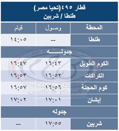 ويترتب على ذلك تعديل جدوال قطارات أرقام ( 892 – 889 / 506 / 495 ) طبقا للجداول المرفقة .