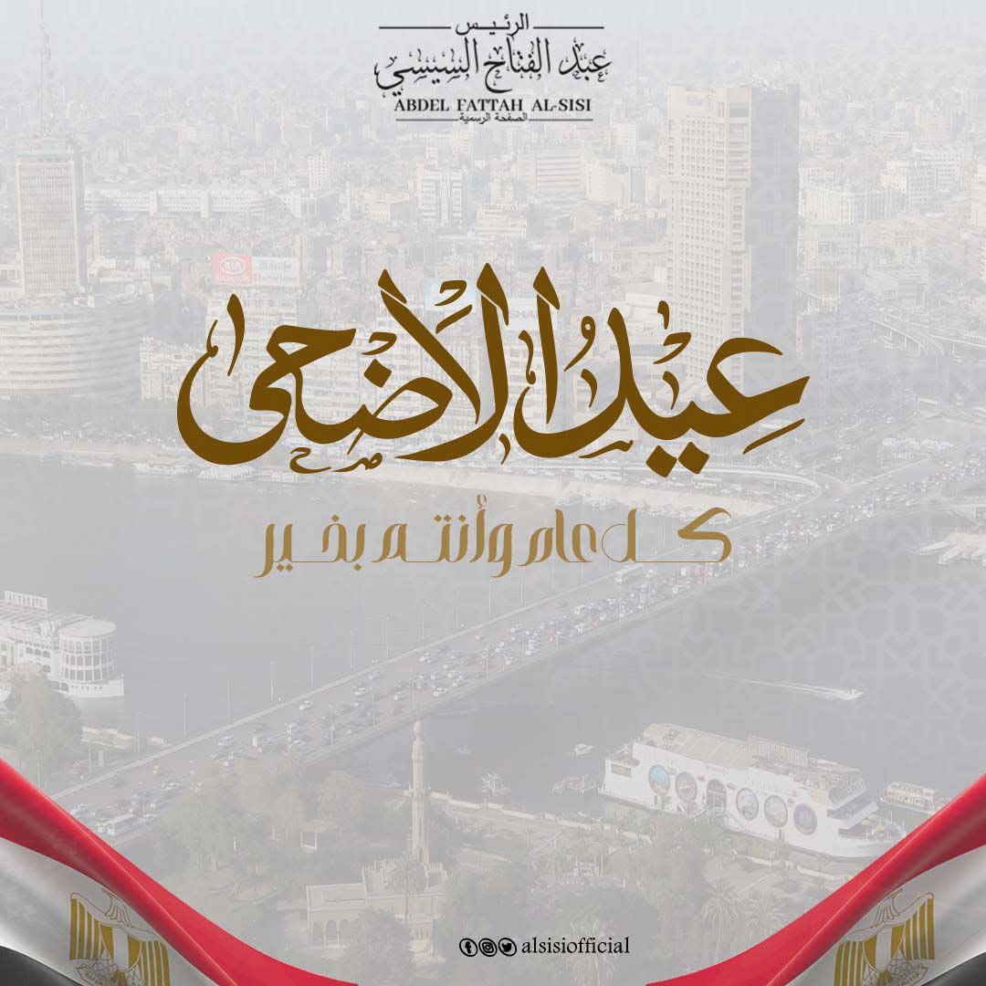 الرئيس السيسى يتقدم بأصدق التهاني وأطيب الأمنيات إلى الشعب المصري العظيم وإلى الأمتين العربية والإسلامية، بمناسبة حلول عيد الأضحى المبارك