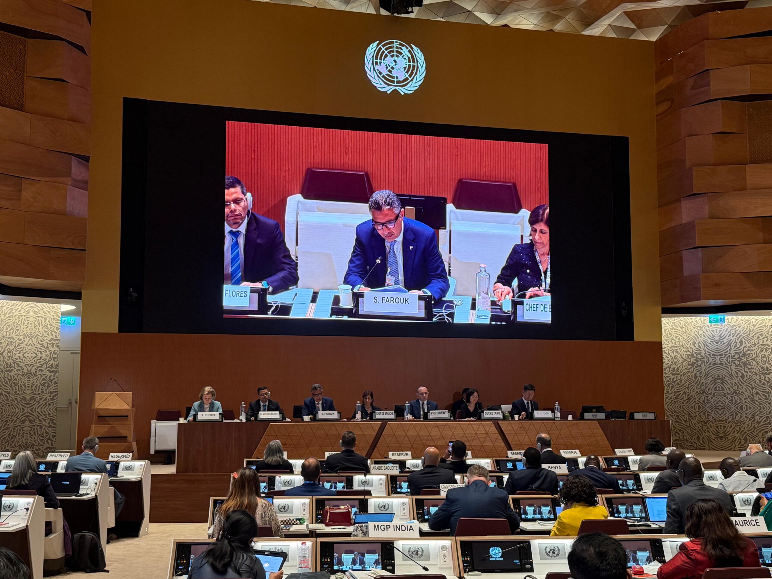 *الدكتور شريف فاروق وزير التموين والتجارة الداخلية يلقي كلمة مصر خلال الجلسة الافتتاحية في مؤتمر الأمم المتحدة بجنيف ويؤكد التزام مصر بحماية المستهلك وتعزيز الأمن الغذائي.*