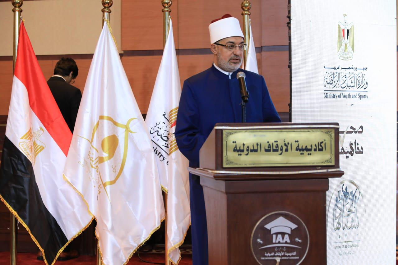 بحضور وزير الشباب والرياضة ووزير شئون المجالس النيابية ومفتي الجمهورية ومحافظ الجيزة وعدد من المسئولين وزير الأوقاف يفتتح معسكر “صحح مفاهيمك” بأكاديمية الأوقاف الدولية