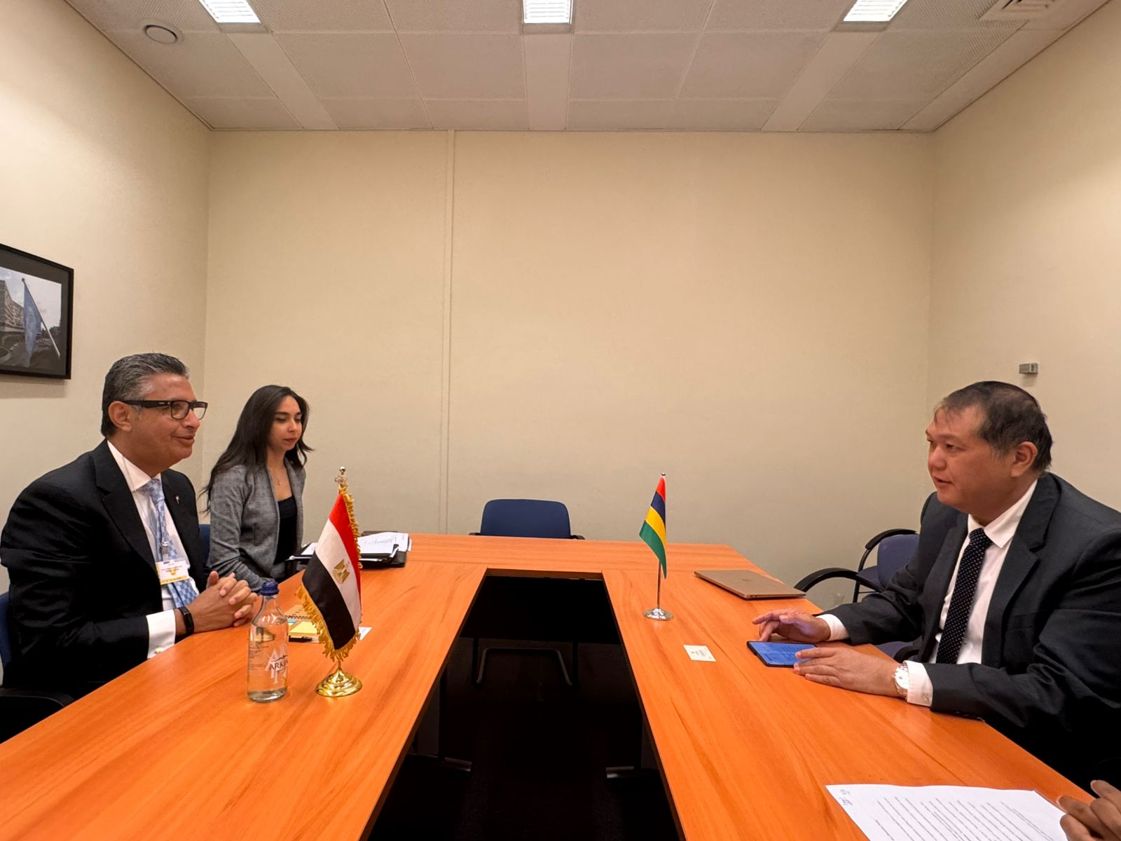 عقد معالي الدكتور شريف فاروق، وزير التموين والتجارة الداخلية، لقاءً ثنائيًا مع السيد مايكل يونغ سيك يون، وزير التجارة بجمهورية موريشيوس، وذلك على هامش أعمال مؤتمر الأمم المتحدة للتجارة والتنمية، المقام حاليًا في جينيف، حيث تناول اللقاء بحث فرص التعاون في مجالات السلع التموينية وتأمين الاحتياجات الاستراتيجية من المنتجات الغذائية.