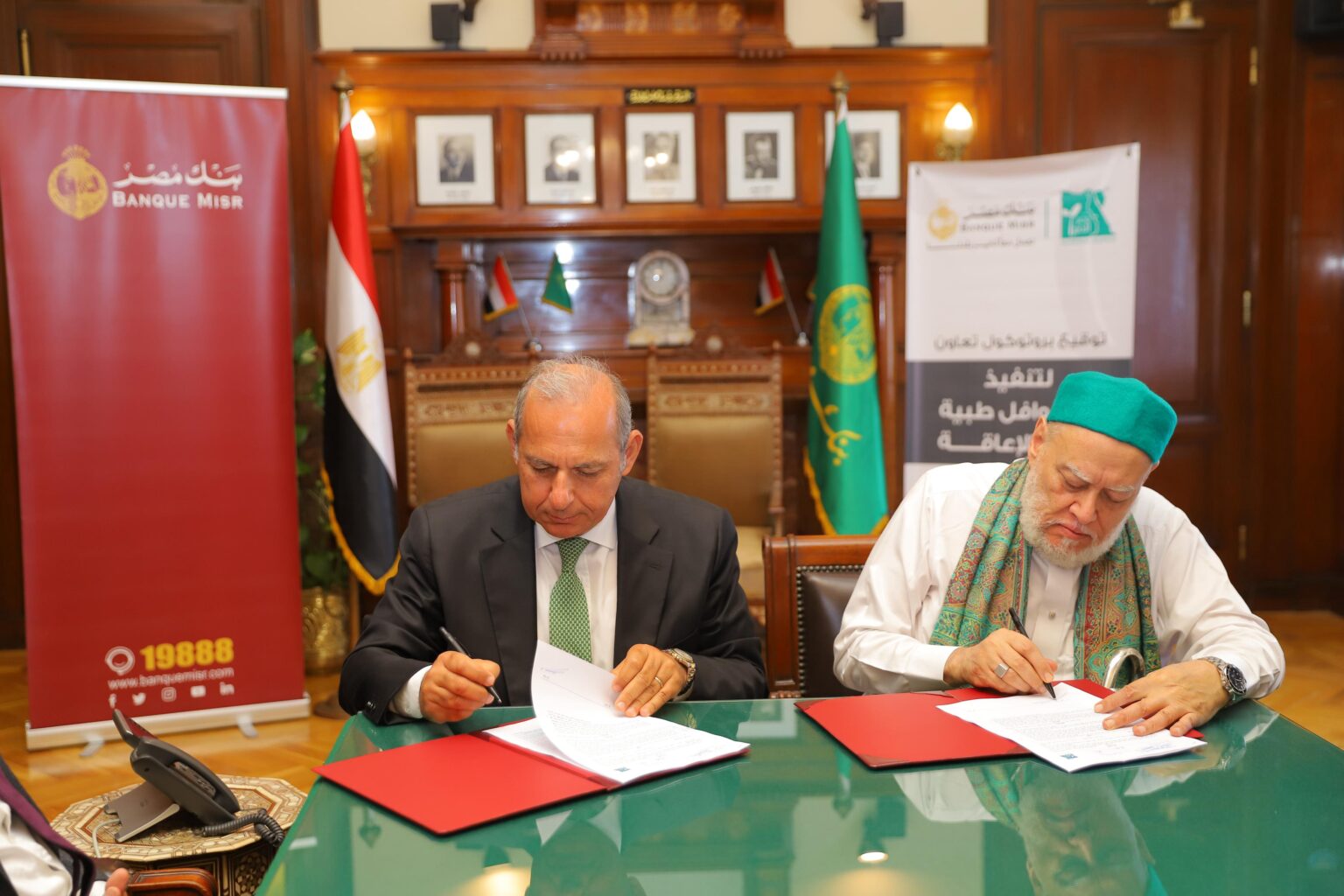 بنك مصر يوقع بروتوكولي تعاون مع مؤسسة مصر الخير لميكنة جميع عمليات المدفوعات والمتحصلات المالية الخاصة بالمؤسسة وتنفيذ قوافل طبية متخصصة لدعم ذوي القدرات الخاصة بخمس محافظات