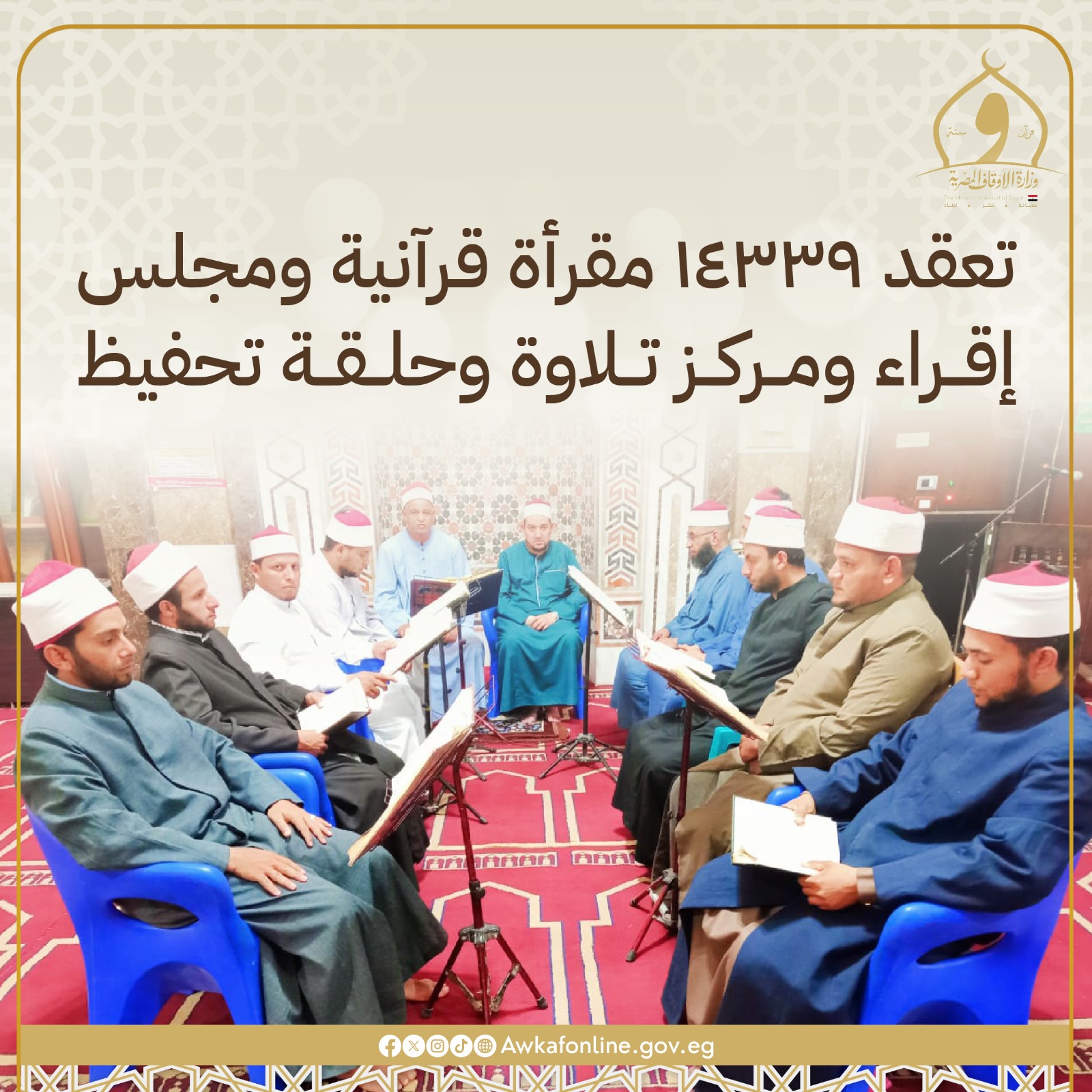 يعرض المركز الإعلامي بوزارة الأوقاف إحصائية بأنشطة الوزارة خلال الأسبوع المنصرم، وهي كما يلي:
