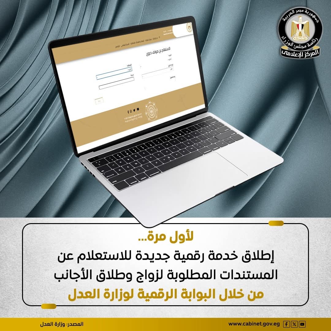 وزارة العدل : إطلاق الخدمة الرقمية الجديدة بشكل تجريبي من خلال البوابة الرقمية بهدف توعية المواطنين راغبي الزواج من الأجانب والمواطنين المسيحين من غير متحدي الملة والطائفة