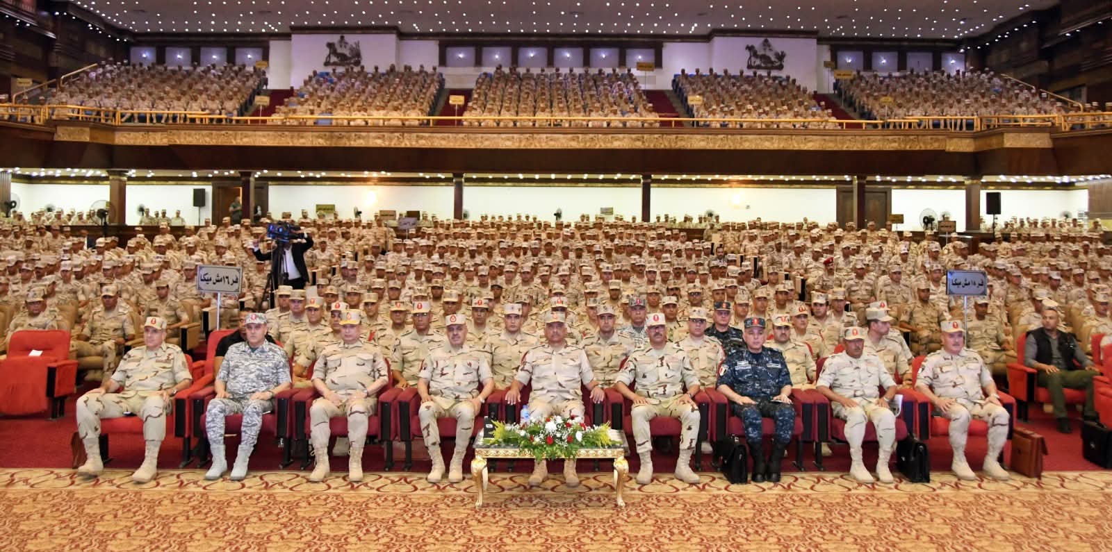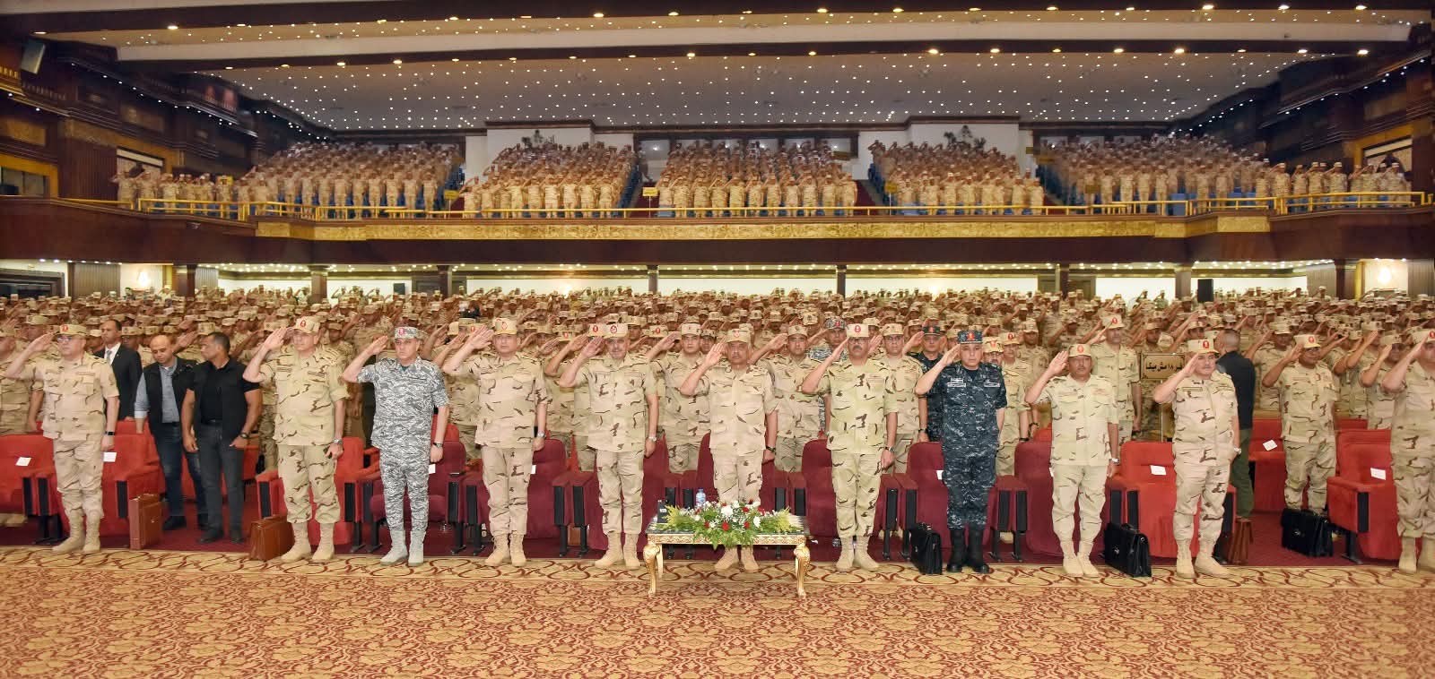 إلتقى الفريق أول / عبد المجيد صقر القائد العام للقوات المسلحة وزير الدفاع والإنتاج الحربى بعدد من مقاتلى الجيش الثانى الميدانى وكلية الضباط الإحتياط ومعهد ضباط الصف المعلمين والذى يأتى فى إطار اللقاءات التى تقوم بها القيادة العامة للقوات المسلحة للتواصل مع رجال القوات المسلحة وإطلاعهم على أحدث المستجدات لكافة القضايا والموضوعات المرتبطة بالأمن القومى المصرى ، وذلك بحضور الفريق / أحمد خليفة رئيس أركان حرب القوات المسلحة وقادة الأفرع الرئيسية وعدد من قادة القوات المسلحة .