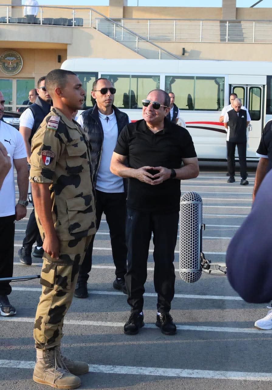 وذكر السفير محمد الشناوي، المتحدث الرسمي، أن السيد الرئيس تابع عقب ذلك الطابور الصباحي للياقة البدنية لطلاب الأكاديمية، حيث أشاد سيادته في هذا الصدد بالمستوى الرفيع الذي يتمتع به الطلاب من حيث اللياقة البدنية والثقة بالنفس، والذي انعكس جليًا في أدائهم خلال التدريبات، كما شارك السيد الرئيس طلاب الأكاديمية العسكرية قي تناول وجبة الإفطار، حيث تبادل سيادته الحوار مع طلاب الاكاديمية، وتم التأكيد في هذا السياق على أهمية التفاني في التدريب والتحصيل العلمي، إلى جانب ضرورة الوعي بما يحيط مصر من أحداث محلية، وأزمات إقليمية، وتطورات دولية.