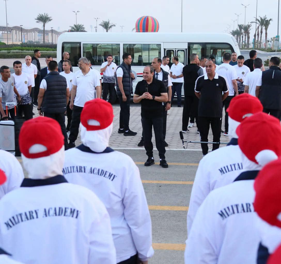 وصرح المتحدث الرسمي باسم رئاسة الجمهورية أن السيد الرئيس بدأ جولته بأداء صلاة الفجر مع طلاب الأكاديمية، أعقبها لقاء مباشر معهم، حيث أعرب عن تقدير سيادته البالغ لقيادات الأكاديمية وأعضاء هيئة التدريس والدارسين والدارسات. وأكد سيادته لطلبة الاكاديمية على أن الأكاديمية لم تعد مصنعًا للرجال فحسب، بل أصبحت منارة لإعداد الرجال والسيدات، وبناء الشخصية المصرية المتزنة القادرة على مواجهة تحديات العصر في مختلف مؤسسات الدولة، مشيدًا بالدورات التي تقدمها الأكاديمية للكوادر المدنية وأهمية برامجها التدريبية والتعليمية في شتى التخصصات.