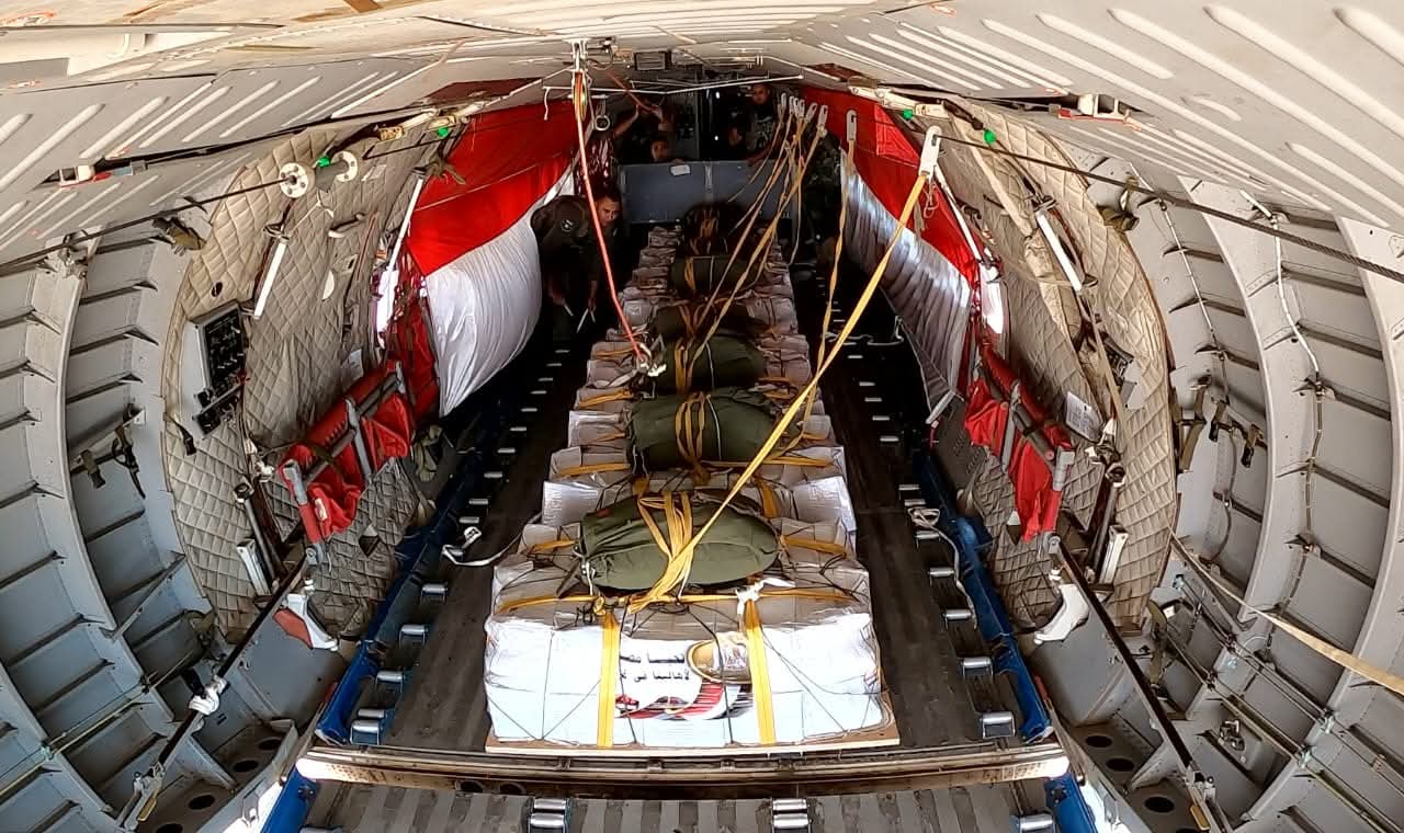 بتوجيهات من الرئيس السيسى رئيس الجمهورية القائد الأعلى للقوات المسلحة إستمرار الإسقاط الجوى للمساعدات الإنسانية على قطاع غزة