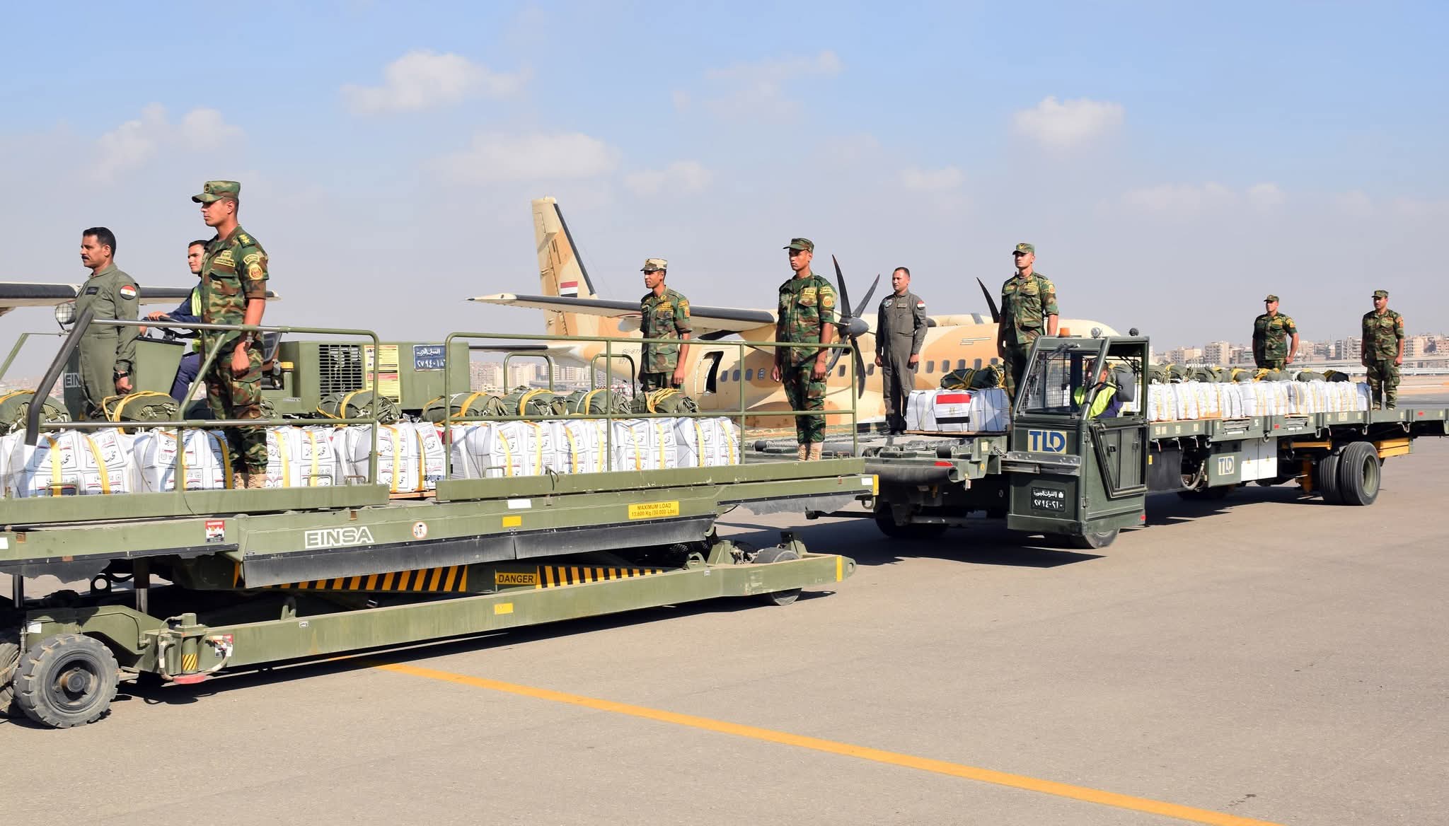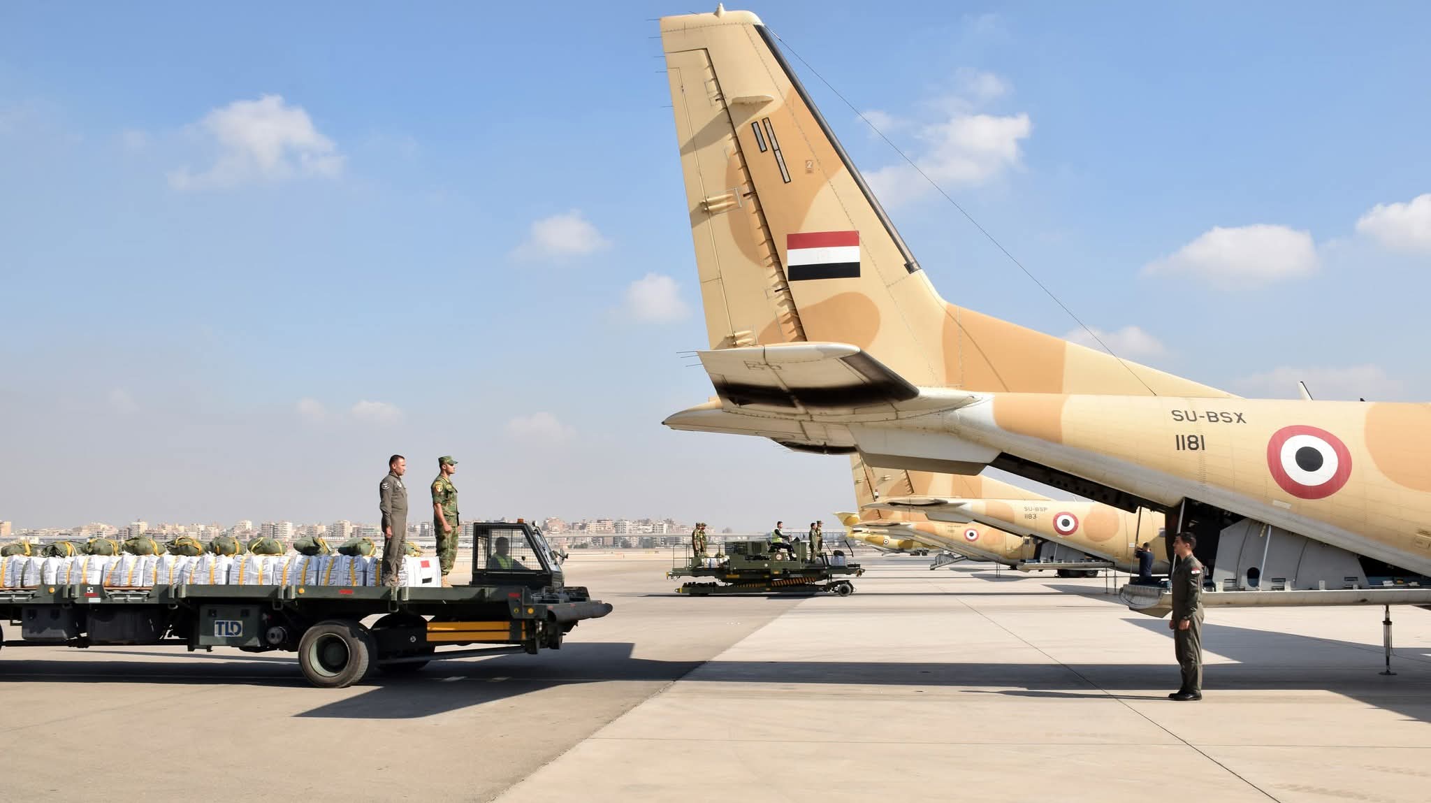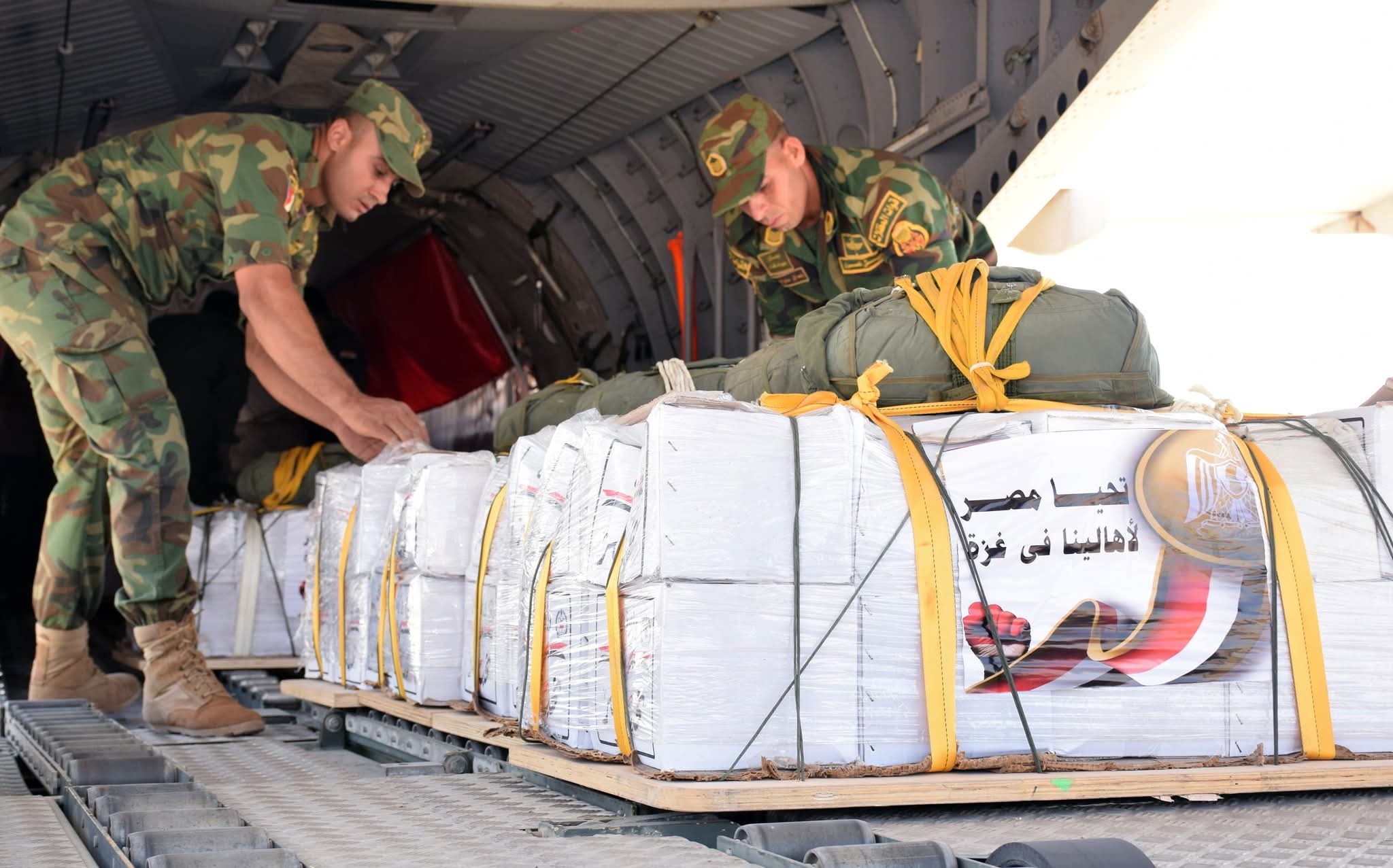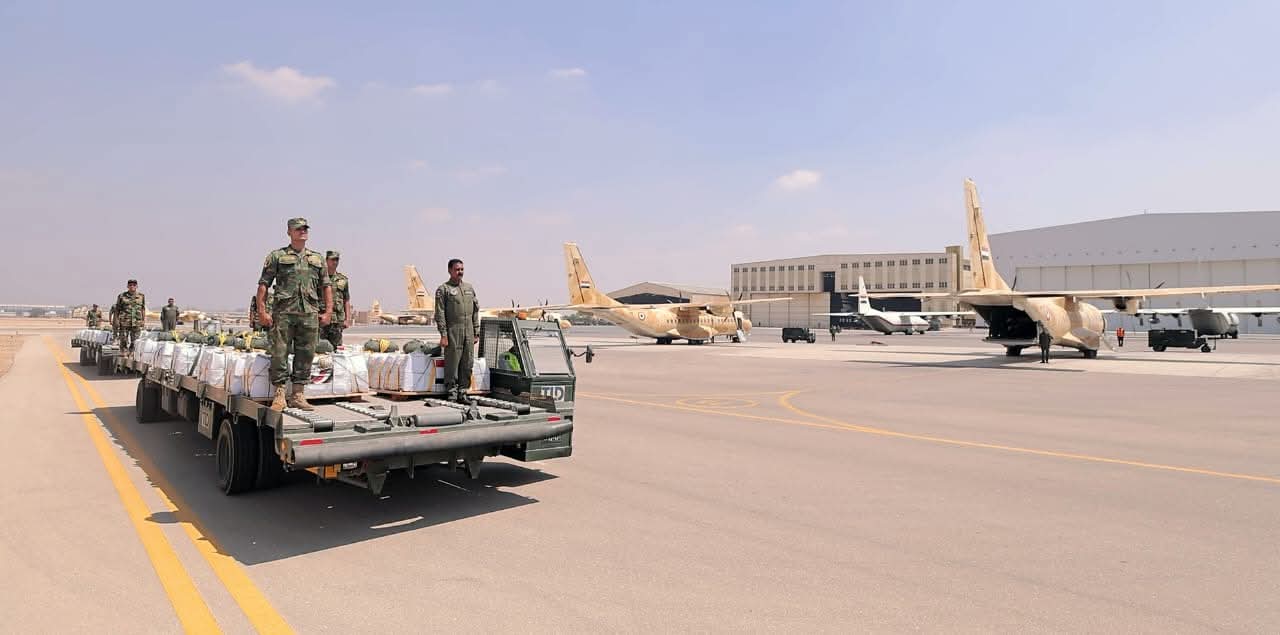 حيث أقلعت 12 طائرة نقل عسكرية على مدار الثلاثة أيام الماضية محملة بكميات كبيرة من المساعدات الغذائية لتنفيذ أعمال الإسقاط الجوى على المناطق التى يصعب الوصول إليها براً بقطاع غزة ، وذلك بالتزامن مع إستمرار المساعى المصرية لتدفق الشاحنات المحملة بالمساعدات للقطاع براً .
