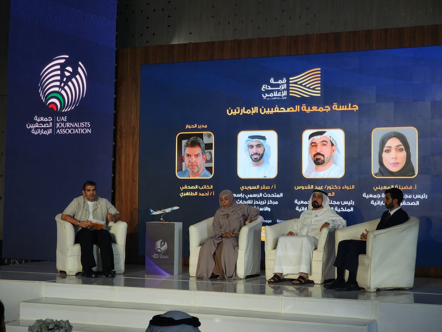 أدار الإعلامي أحمد الطاهري، فعاليات جلسة «جمعية الصحفيين الإماراتيين»، المنعقدة على هامش النسخة الثانية من قمة الإبداع الإعلامي للشباب العربي، والمنعقدة في مدينة العلمين الجديدة على مدار 3 أيام.