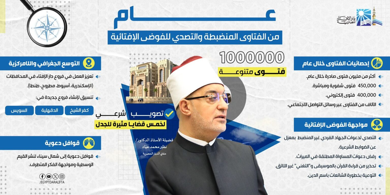 وقد بلغ إجمالي ما أصدرته دار الإفتاء خلال هذا العام ما يزيد على مليون فتوى، توزعت على مختلف أبواب الفقه من الأحوال الشخصية، إلى المعاملات المالية، والقضايا الأسرية، والمستجدات الاجتماعية، بما يعكس مدى تنوع القضايا المطروحة وارتباطها الوثيق بحياة الناس. فقد سُجل نحو 450 ألف فتوى شفوية ومباشرة، إضافة إلى نحو 400 ألف فتوى عبر الإنترنت، في مؤشر واضح على تنامي ثقة الجمهور بالدار.