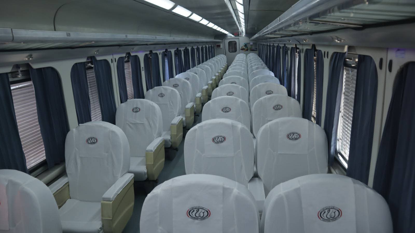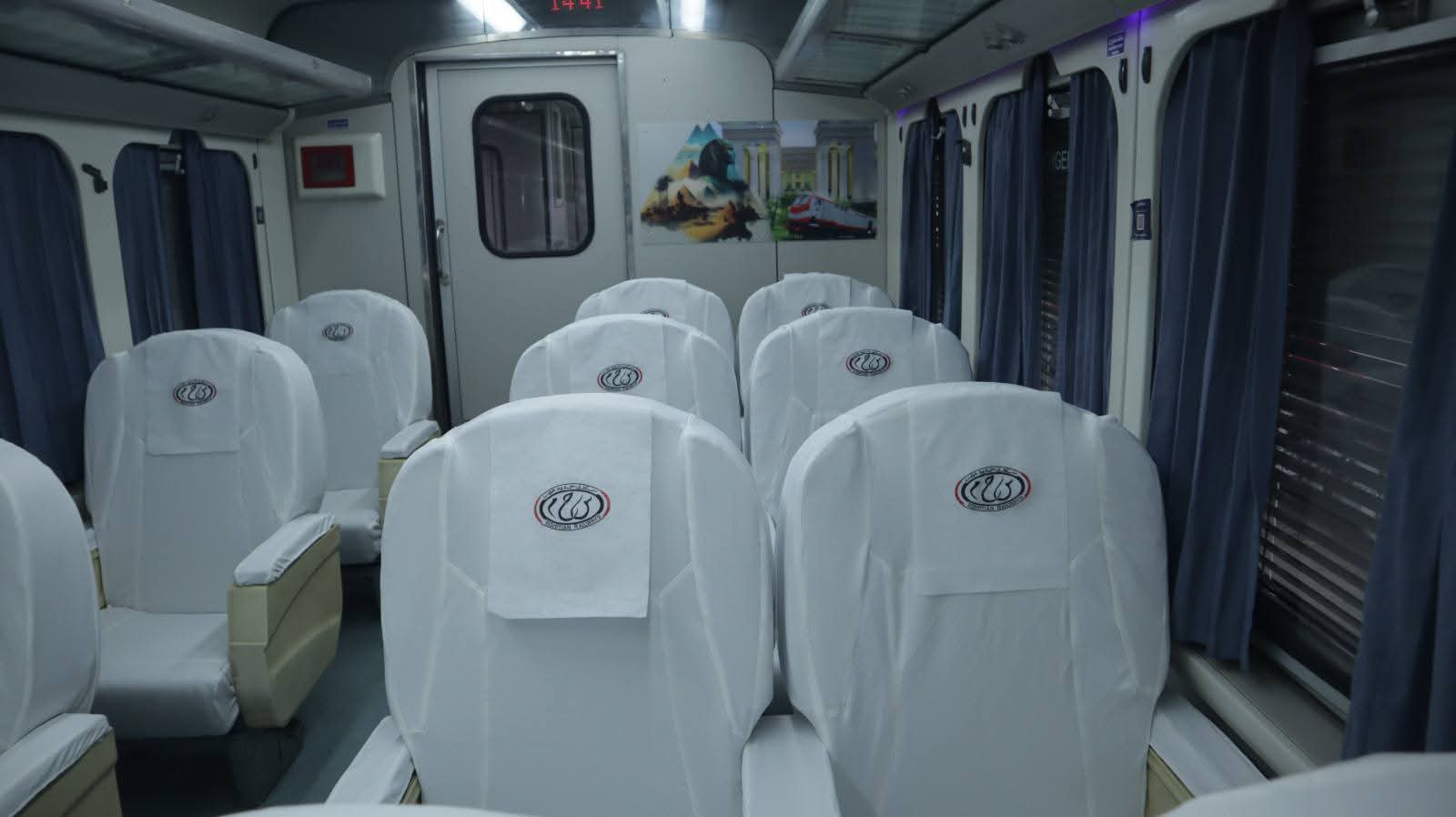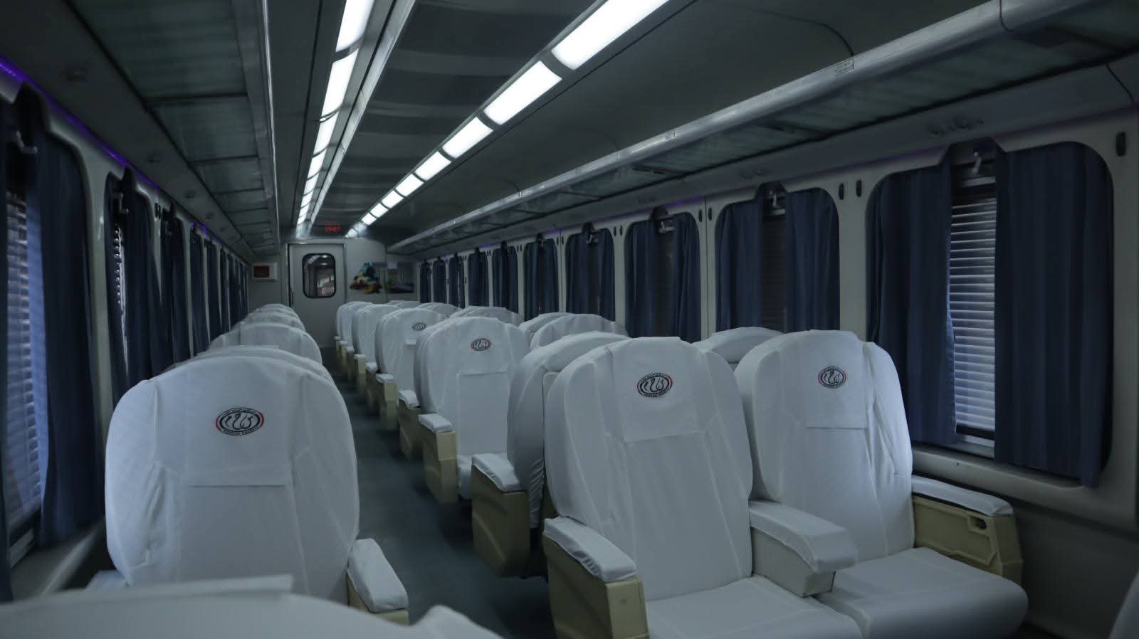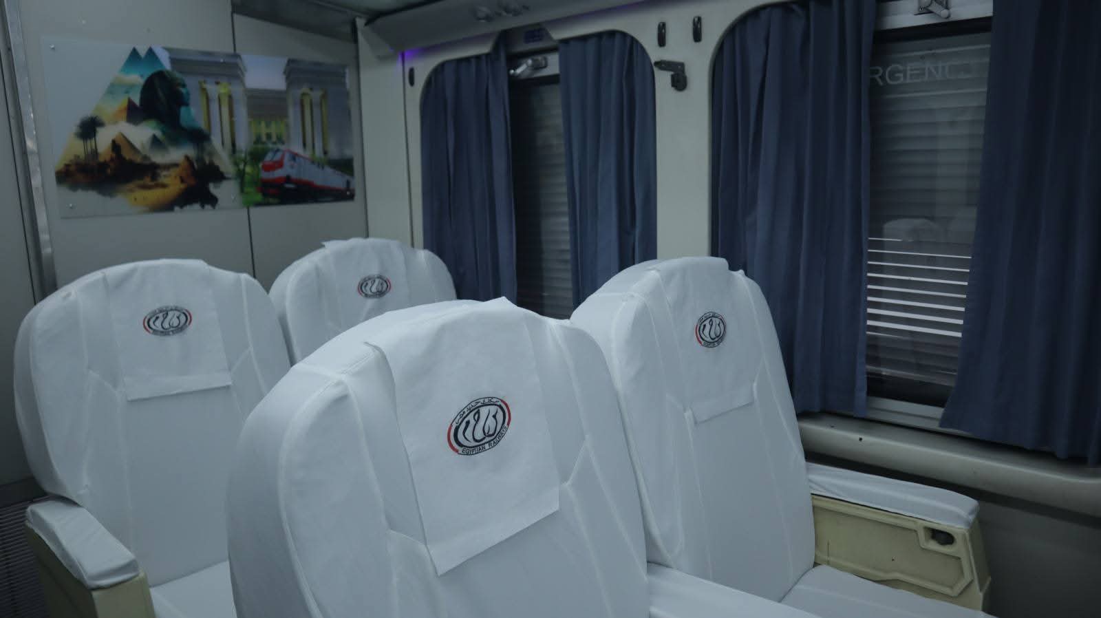 عدد من العربات المميزة المزودة بمقاعد مريحة تحقق مستوى عالٍ من الرفاهية والتميز خلال الرحلة .