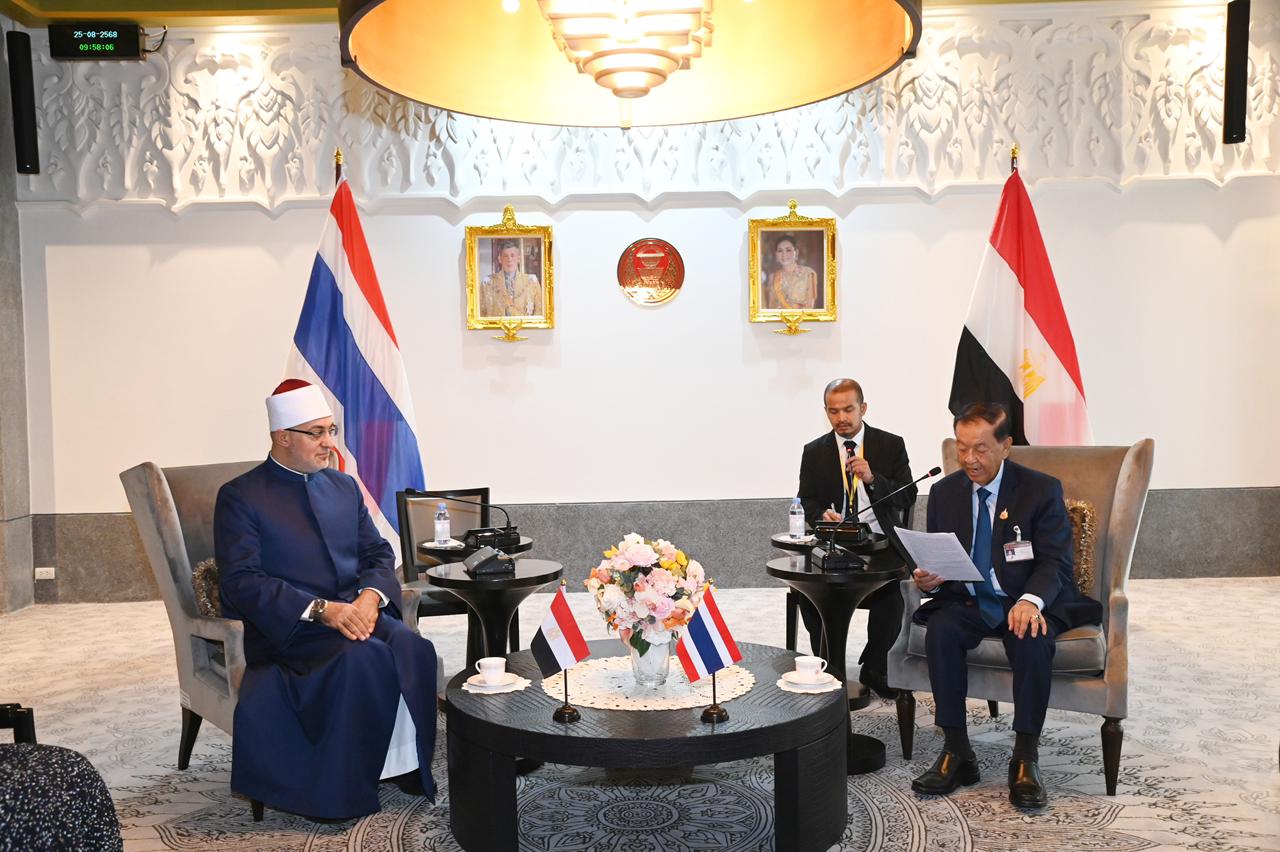 مفتي الجمهورية يلتقي رئيس البرلمان التايلاندي ويؤكد موقف مصر من القضية الفلسطينية ويطرح آفاقًا للتعاون العلمي والديني