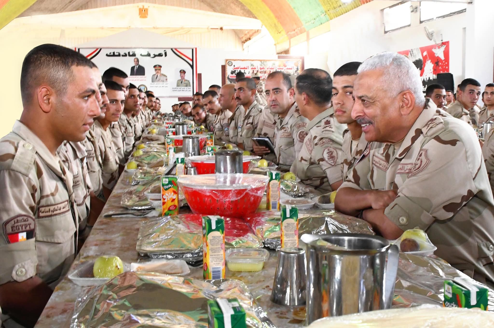 In his address, he urged the personnel to preserve their high morale and self-discipline, affirming that the men of the Armed Forces embody the highest ideals of honor, dignity, and selfless service for the sake of the nation. The Commander-in-Chief also joined the troops for lunch, expressing his deep appreciation for their dedication and pride in fulfilling their duties to ensure Egypt’s security and stability.