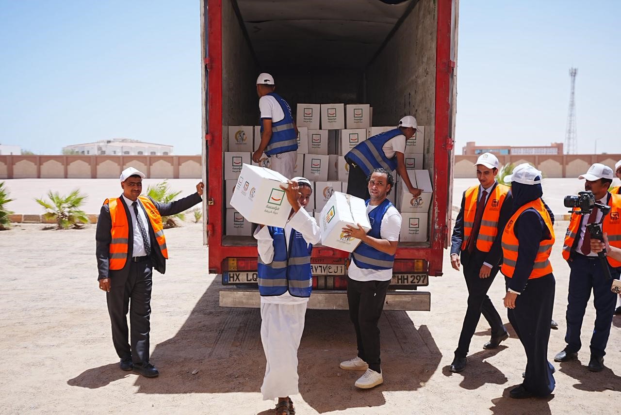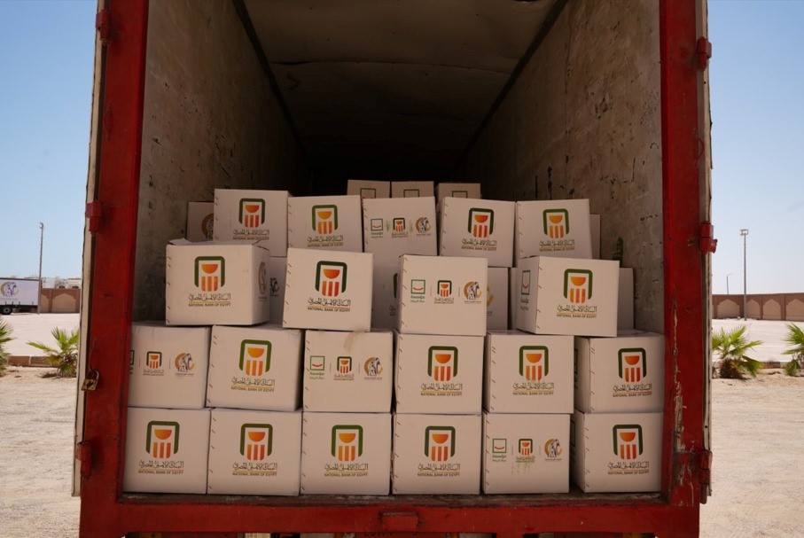 البنك الأهلي المصري يشارك في توزيع 20,000 كرتونة مواد غذائية للأسر الأولى بالرعاية بحلايب وشلاتين وأبورماد بالتعاون مع المجلس القومي للمرأة ومؤسسة حياة كريمة