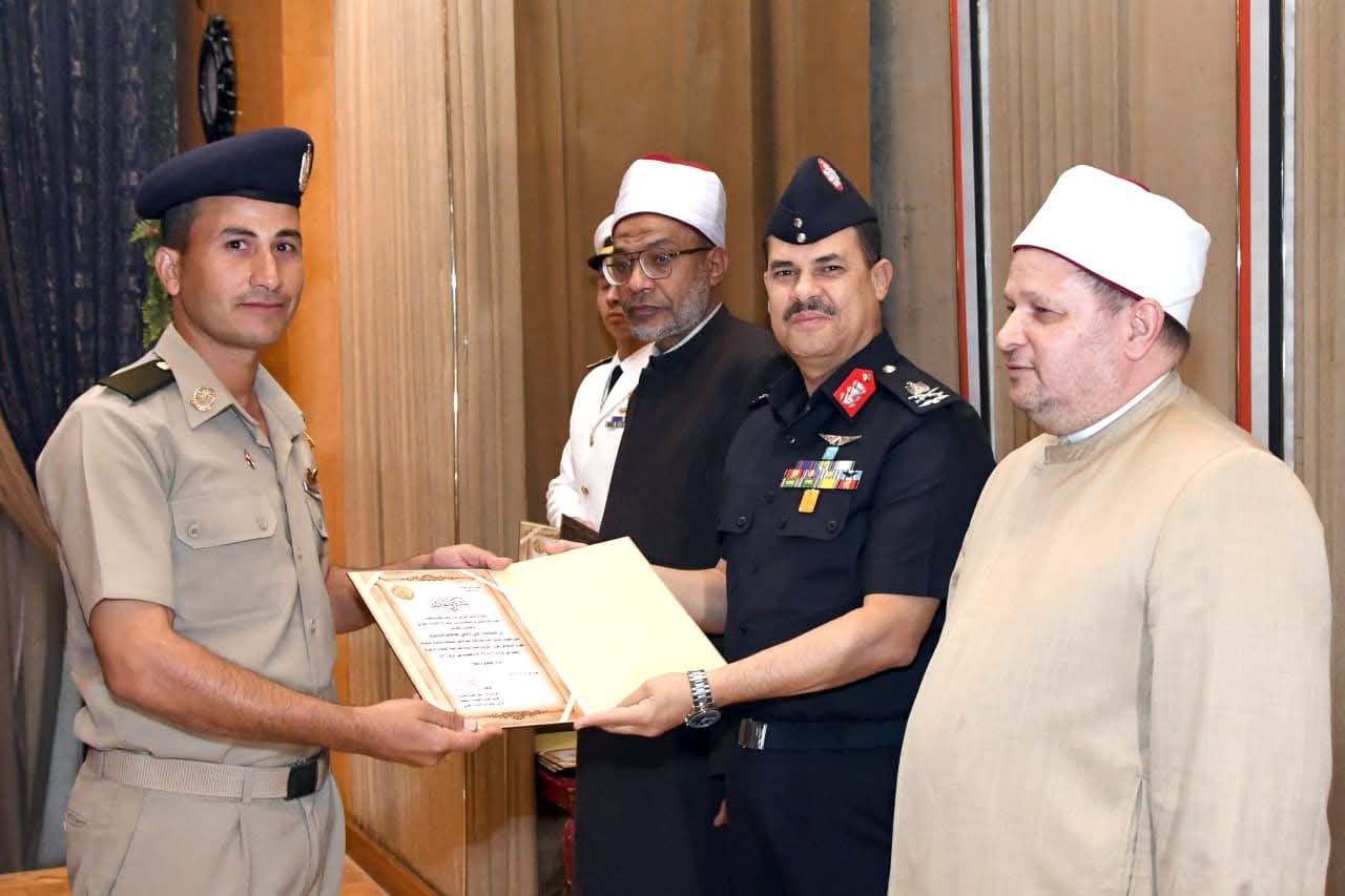 وفى نهاية الإحتفال تم تكريم عدداً من الفائزين فى المسابقة الدينية السنوية فى القرآن الكريم والسيرة النبوية والتى تحرص القيادة العامة للقوات المسلحة على تنظيمها لتنمية الوازع الدينى لدى أفراد القوات المسلحة والتمسك بالقيم الدينية والأخلاقية .