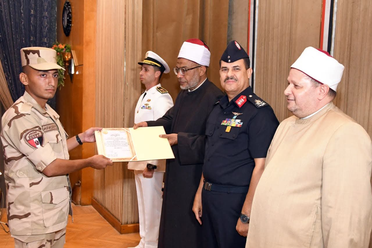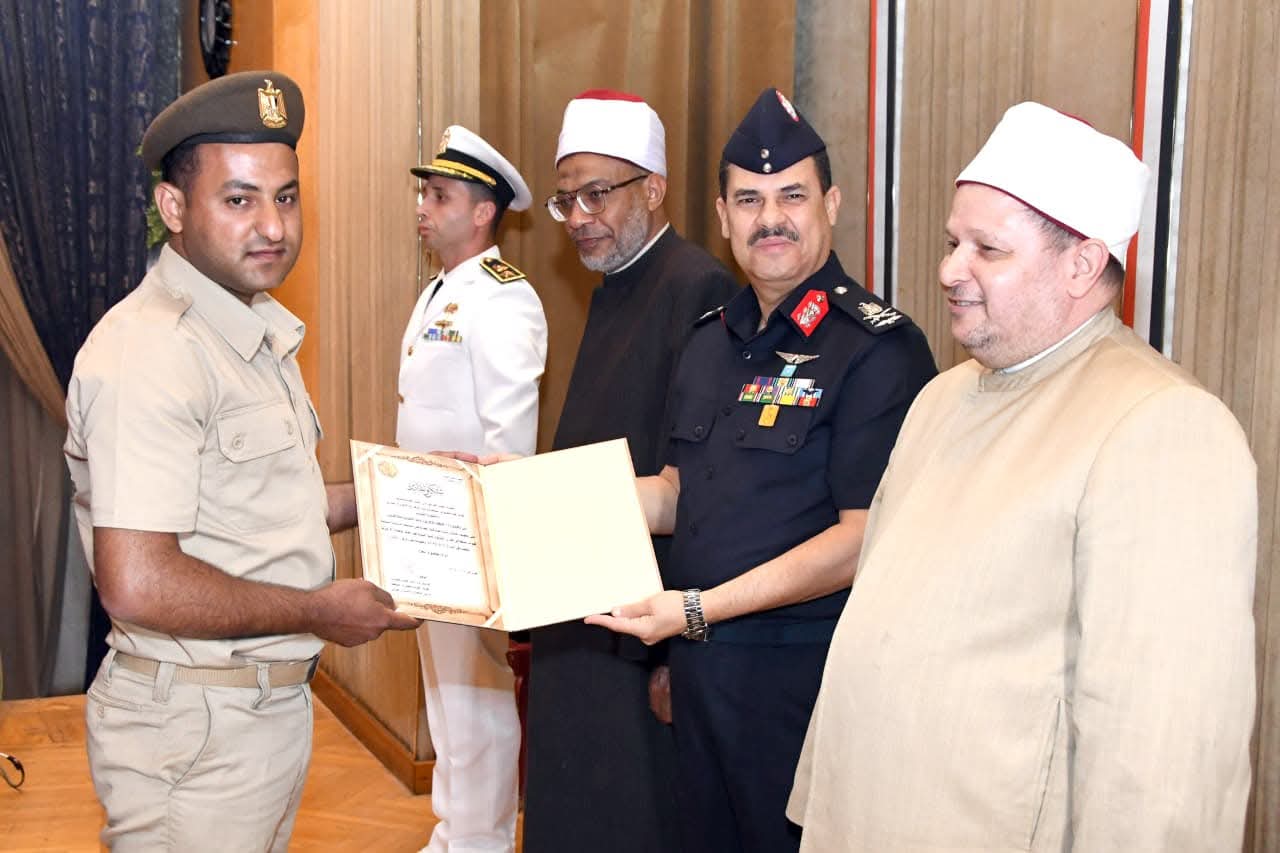 وفى نهاية الإحتفال تم تكريم عدداً من الفائزين فى المسابقة الدينية السنوية فى القرآن الكريم والسيرة النبوية والتى تحرص القيادة العامة للقوات المسلحة على تنظيمها لتنمية الوازع الدينى لدى أفراد القوات المسلحة والتمسك بالقيم الدينية والأخلاقية .
