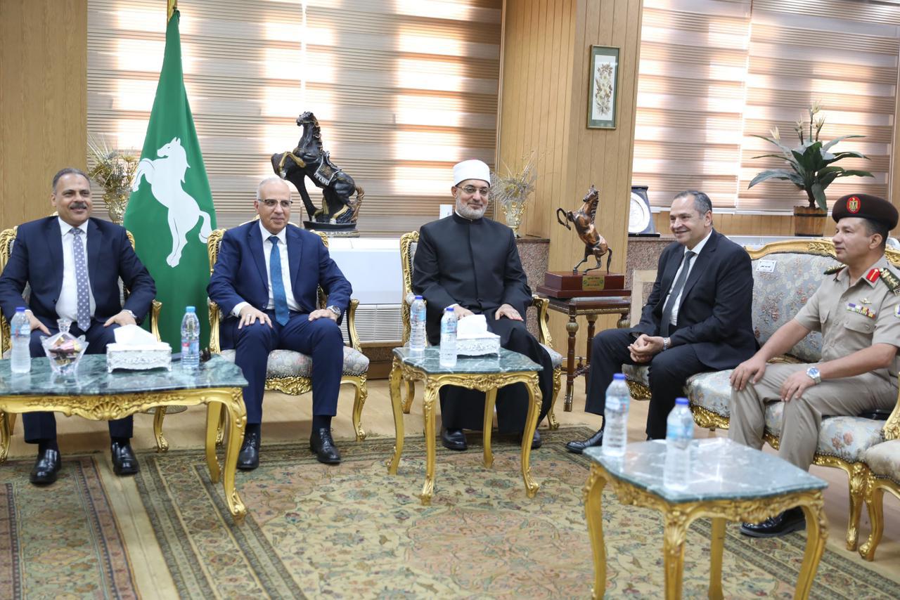 كما قام فضيلة المفتي بزيارة ديوان عام محافظة الشرقية، حيث كان في استقبال فضيلته، المهندس حازم الأشموني، محافظ الشرقية، وعدد من القيادات التنفيذية بالمحافظة، مؤكدًا أهمية تعزيز التعاون بين كافة مؤسسات الدولة لنشر الثقافة والفكر القويم، وغرس القيم الإنسانية والأخلاقية في المجتمع، والعمل على ترسيخ المبادئ الدينية السامية التي تحض على التسامح والتعايش، ودعم المبادرات التي تهدف إلى رفع الوعي الفكري والديني بين أبناء الشعب.