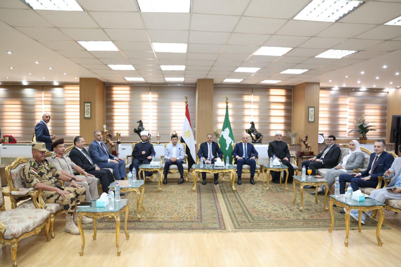 من جانبه، رحب المهندس حازم الأشموني، محافظ الشرقية، بفضيلة مفتي الجمهورية، معربًا عن تقديره العميق للجهود المباركة التي يبذلها فضيلته والدور الريادي الذي يضطلع به في تعزيز الوعي الديني بين أبناء المجتمع، ونشر قيم التسامح والمحبة والأخلاق، فضلًا عن مساهماته المتواصلة في دعم المبادرات المجتمعية، مؤكدًا أن وجود فضيلته بين أبناء محافظة الشرقية في هذه المناسبة الوطنية يُعد دعمًا معنويًا كبيرًا ويعكس أهمية التعاون مع المؤسسات الدينية لتحقيق التنمية المستدامة وتعزيز الهوية الوطنية والانتماء المجتمعي.