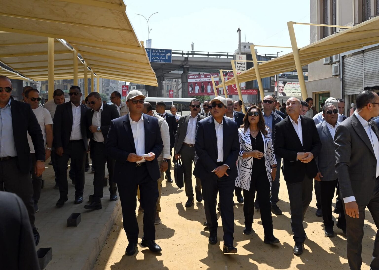 ورافق رئيس الوزراء الدكتورة/ منال عوض، وزيرة التنمية المحلية، والمهندس/ شريف الشربيني، وزير الإسكان والمرافق والمجتمعات العمرانية، والدكتور إبراهيم صابر خليل، محافظ القاهرة، والمهندس/ محمد أبو سعدة، رئيس الجهاز القومي للتنسيق الحضاري، والمهندس/ أحمد العصار، رئيس شركة المقاولون العرب، والسيد/ أحمد رزق، مدير برنامج الأمم المتحدة للمستوطنات البشرية (الهابيتات) في مصر.