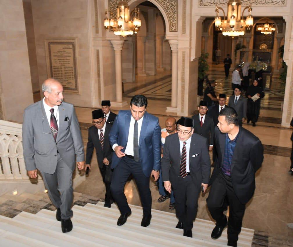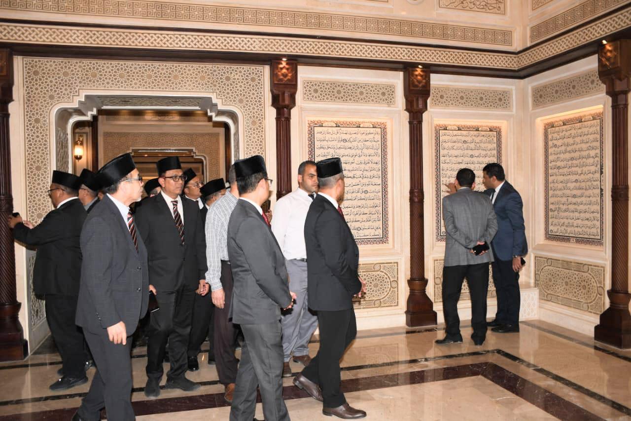 وكان في استقبال الوفد المستشار جلال الدين عبد العاطي، المستشار القانوني لوزارة الأوقاف، والعميد ماهر السيد، المشرف العام على مسجد مصر الكبير والمركز الثقافي الإسلامي ودار القرآن الكريم، بحضور المستشار أحمد غنيمي، عضو المكتب الفني للمركز القومي للدراسات القضائية.