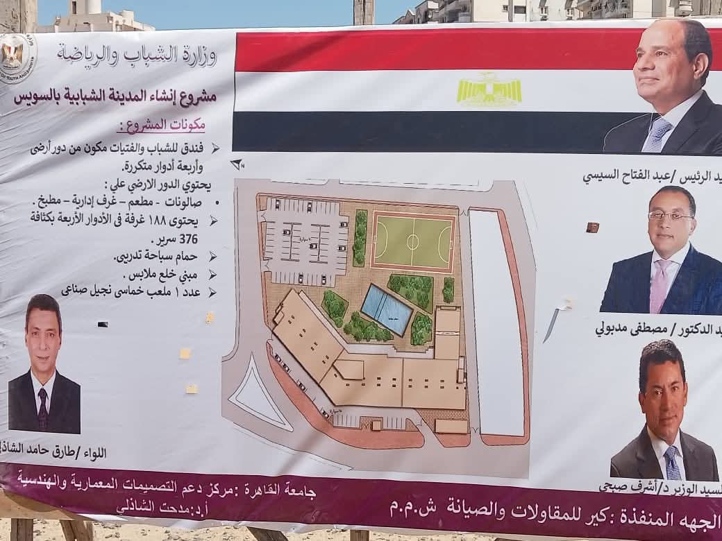 بدأت وزارة الشباب والرياضة، برئاسة الدكتور أشرف صبحي، تنفيذ أعمال إنشاء المدينة الشبابية بمحافظة السويس، ضمن خطة الدولة للتوسع في تطوير المنشآت الشبابية والرياضية وتقديم خدمات متكاملة للأجيال الجديدة.