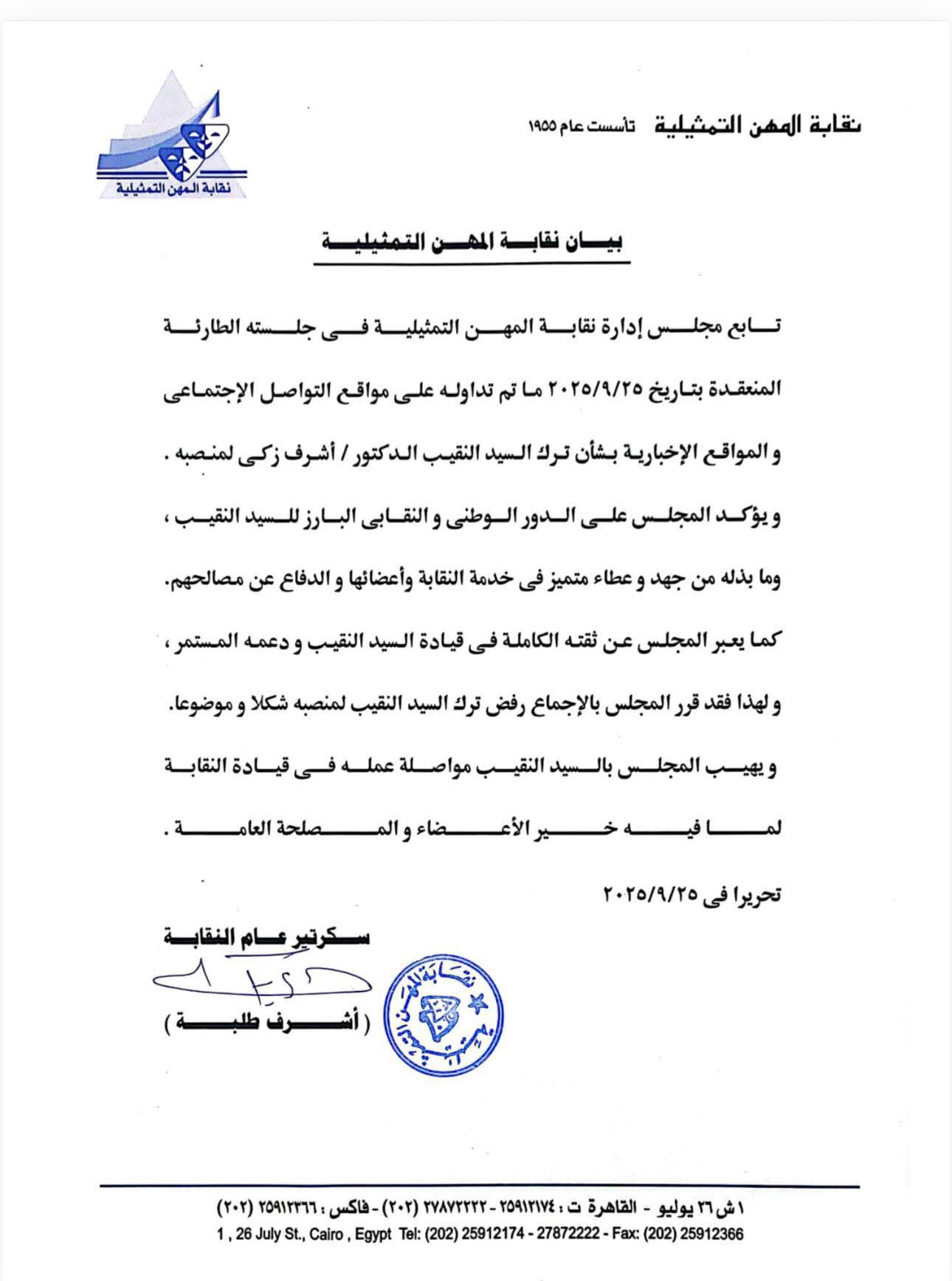 اشرف ذكى نقيب المهن التمثيلية يقدم استقالته