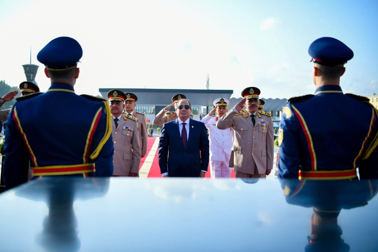في إطار احتفالات جمهورية مصر العربية والقوات المسلحة بالذكرى الثانية والخمسين لانتصارات السادس من أكتوبر المجيدة، توجّه السيد الرئيس عبد الفتاح السيسي، صباح اليوم، إلى منطقة النصب التذكاري لشهداء القوات المسلحة بمدينة نصر، حيث كان في استقبال سيادته الفريق أول عبد المجيد صقر، القائد العام للقوات المسلحة وزير الدفاع والإنتاج الحربي، والفريق أحمد خليفة، رئيس أركان حرب القوات المسلحة، إلى جانب قادة الأفرع الرئيسية للقوات المسلحة وقائد المنطقة المركزية العسكرية.