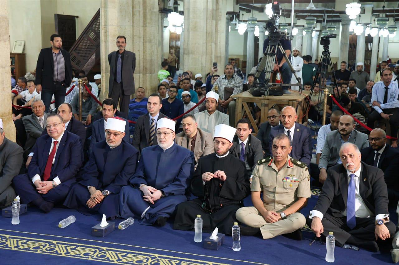شهد الأستاذ الدكتور أسامة الأزهري – وزير الأوقاف، الاحتفال الوطني الكبير، الذي أقامه الأزهر الشريف بالجامع الأزهر، بمناسبة الذكرى الثانية والخمسين لانتصارات أكتوبر المجيدة، بحضور الأستاذ الدكتور محمد عبد الرحمن الضويني – وكيل الأزهر الشريف، وفضيلة الأستاذ الدكتور نظير محمد عياد – مفتي الديار المصرية، وسماحة السيد محمود الشريف – نقيب السادة الأشراف، وسماحة الدكتور عبد الهادي القصبي – شيخ مشايخ الطرق الصوفية، والأستاذ الدكتور سلامة داود – رئيس جامعة الأزهر، والسيد اللواء محمد العتريس ممثلًا عن القوات المسلحة المصرية، وعدد من أعضاء هيئة كبار العلماء وقيادات الأزهر ووزارة الأوقاف.