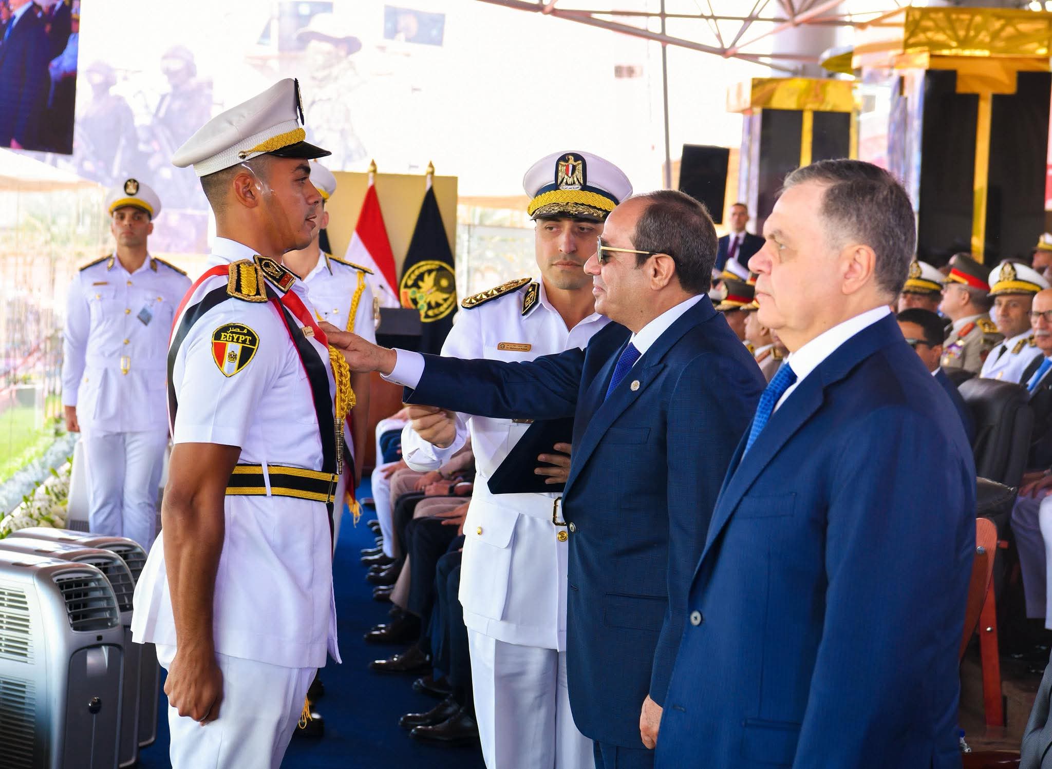 وصرّح المتحدث الرسمي باسم رئاسة الجمهورية بأن السيد الرئيس حرص، فور وصوله إلى أكاديمية الشرطة، على المرور أمام منصات الحضور من أهالي الخريجين لتحيتهم، حيث كان في استقبال سيادته اللواء محمود توفيق وزير الداخلية، واللواء الدكتور نضال يوسف مساعد وزير الداخلية ورئيس أكاديمية الشرطة، الذي ألقى كلمة في بداية الاحتفال بهذه المناسبة، قدّم في نهايتها هدية تذكارية للسيد الرئيس على هيئة مجسم لمبنى الأكاديمية.