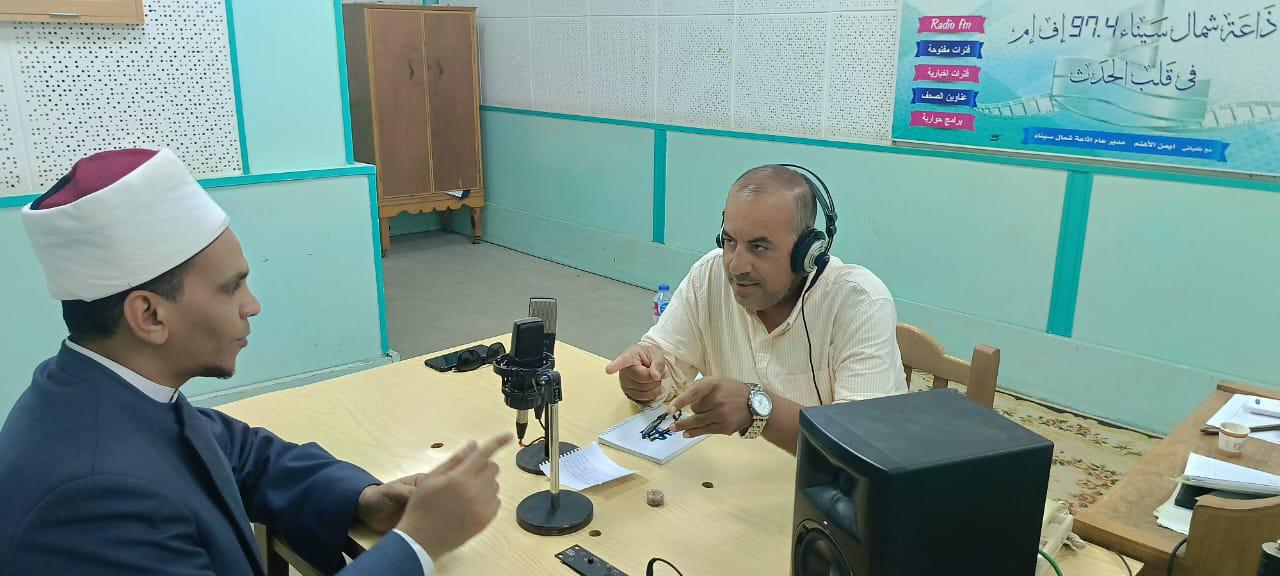 وفي إطار فعاليات القافلة، أجرى الشيخ محمد كمال أحمد محمد، أمين الفتوى بدار الإفتاء المصرية، لقاءً إذاعيًا مع إذاعة شمال سيناء بالعريش يوم الخميس، دار الحديث فيه حول انتصارات السادس من أكتوبر، وأهمية استحضار معاني الصمود والعزيمة والتضحية التي جسدها أبطال القوات المسلحة المصرية في معركة العزة والكرامة، مؤكدًا أن النصر الحقيقي هو نصر القيم والإيمان والوعي، وهو ما يجب أن ينعكس على سلوك الأجيال الجديدة في خدمة الوطن.